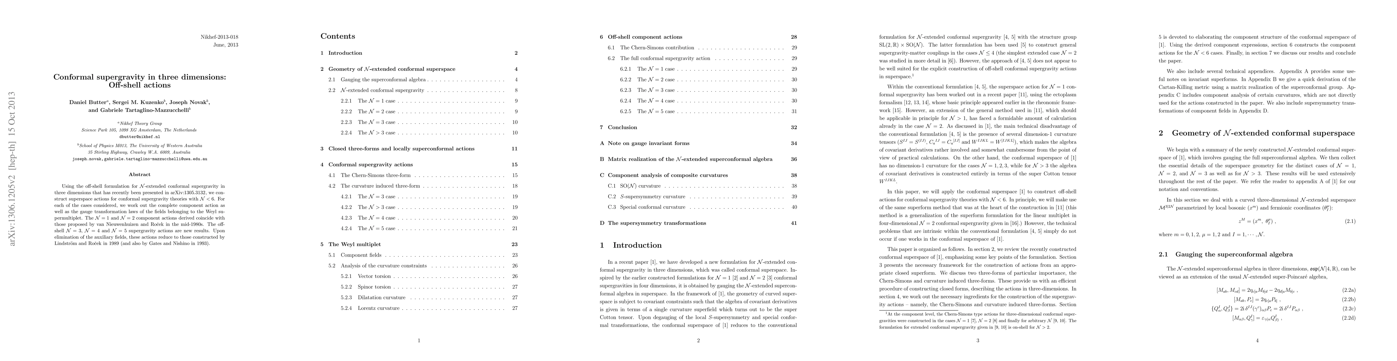 Using the off-shell formulation for N-extended conformal supergravity in three dimensions, which has recently been presented in arXiv:1305.3132, we construct superspace actions for conformal supergravity theories with N<6. For each of the cases considered, we work out the complete component action as well as the gauge transformation laws of the fields belonging to the Weyl supermultiplet. The N=1 and N=2 component actions derived coincide with those proposed by van Nieuwenhuizen and Rocek in the mid-1980s. The off-shell N=3, N=4 and N=5 supergravity actions are new results. Upon elimination of the auxiliary fields, these actions reduce to those constructed by Lindstrom and Rocek in 1989 (and also by Gates and Nishino in 1993).
