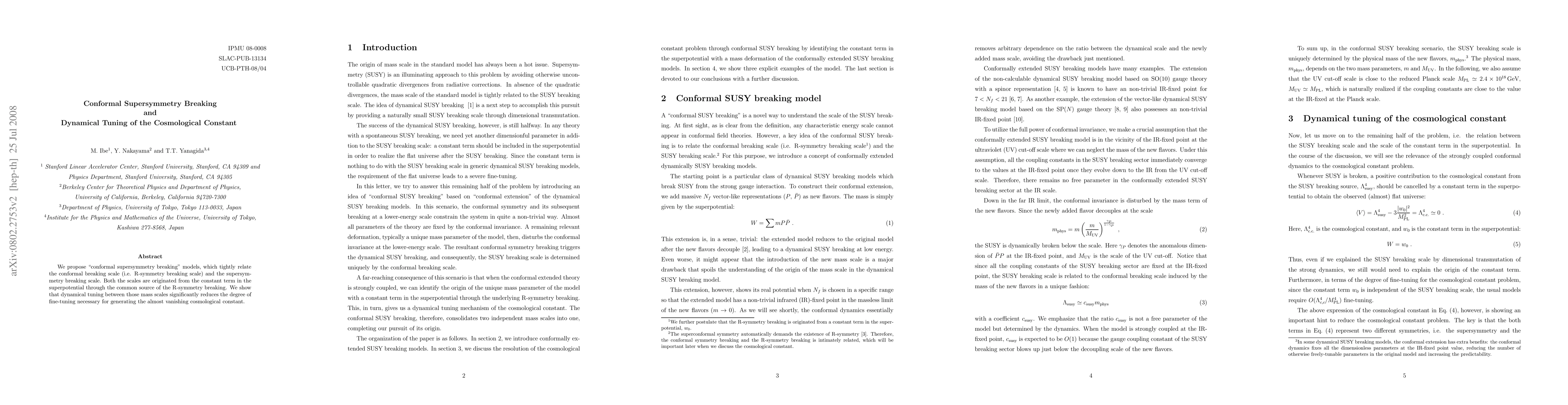 This paper proposes "conformal supersymmetry breaking" models to link the conformal and supersymmetry breaking scales, showing that dynamical tuning between these scales can significantly reduce the fine-tuning required for a nearly vanishing cosmological constant.