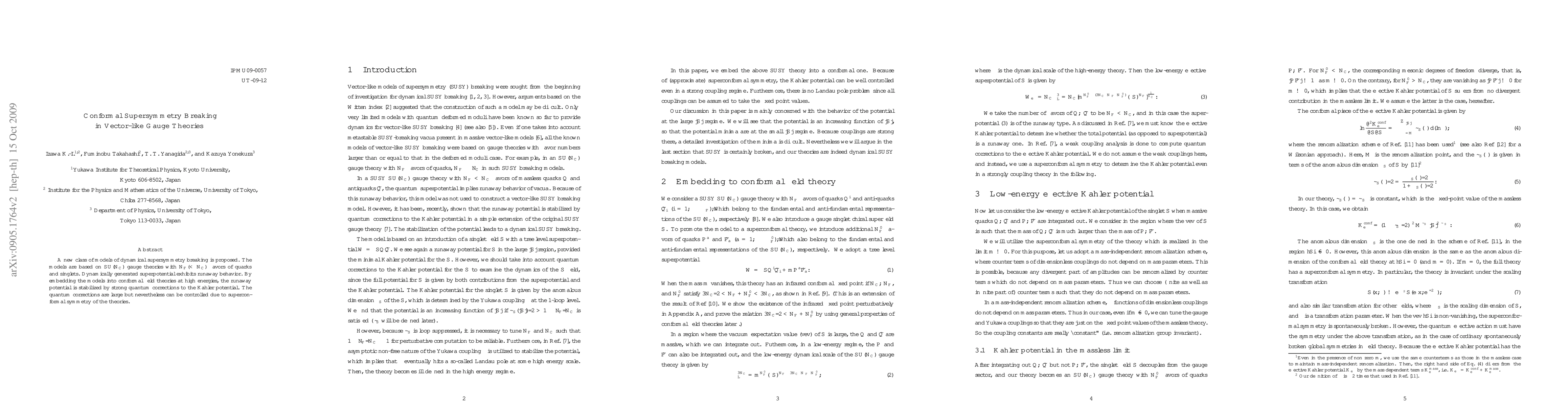 This paper proposes a new class of dynamical supersymmetry breaking models based on SU(N_C) gauge theories with vector-like quark and singlet configurations. The models are stabilized through conformal field theories at high energies, where strong quantum corrections to the Kahler potential control the runaway behavior of the dynamically generated superpotential.