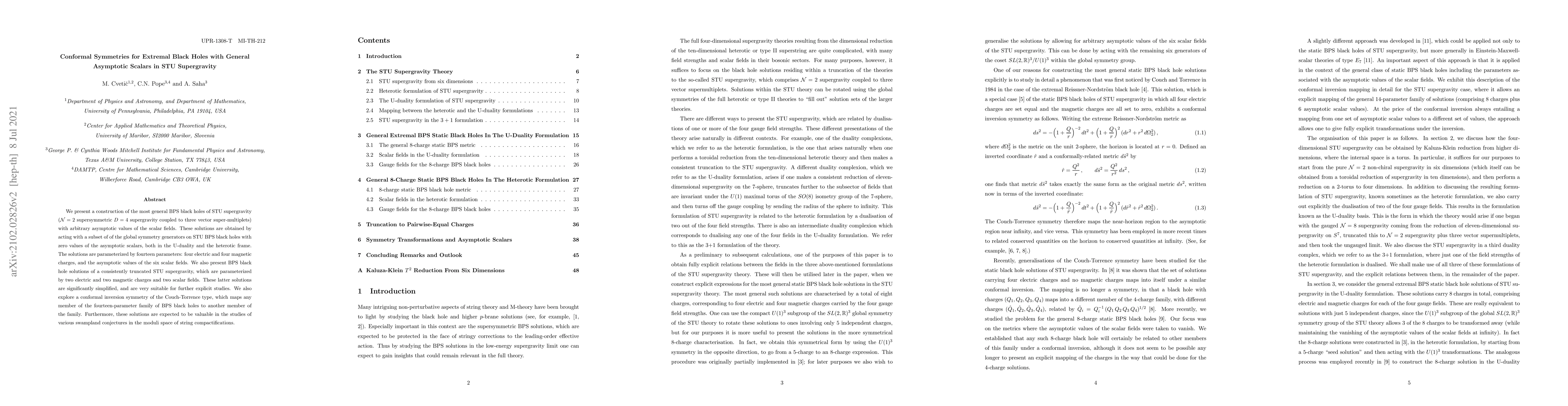 This paper constructs general BPS black hole solutions in STU supergravity with arbitrary scalar field values, revealing a conformal inversion symmetry and simplifying the study of moduli space in string theory. The solutions are parameterized by charges and scalars, and are useful for exploring swampland conjectures.