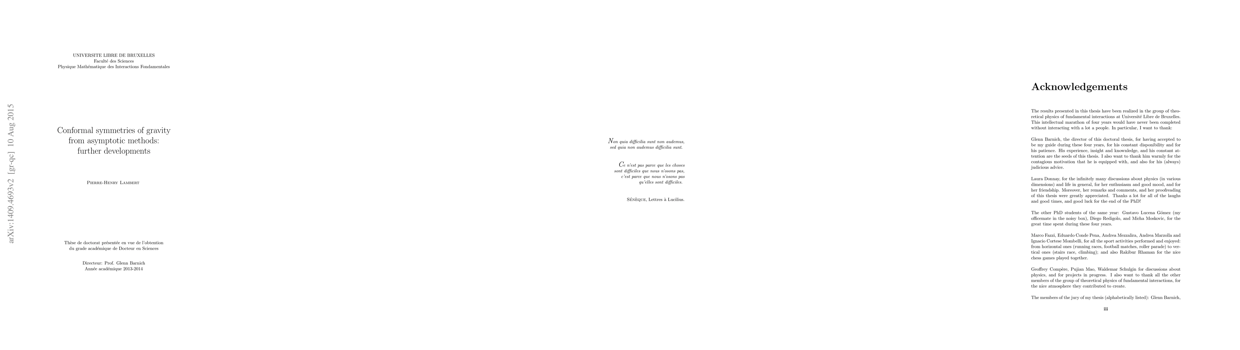 In this thesis, the symmetry structure of gravitational theories at null infinity is studied further, in the case of pure gravity in four dimensions and also in the case of Einstein-Yang-Mills theory in $d$ dimensions with and without a cosmological constant. The first part of this thesis is devoted to the presentation of asymptotic methods (symmetries, solution space and surface charges) applied to gravity in the case of the BMS gauge in three and four spacetime dimensions. The second part of this thesis contains the original contributions. Firstly, it is shown that the enhancement from Lorentz to Virasoro algebra also occurs for asymptotically flat spacetimes defined in the sense of Newman-Unti. As a first application, the transformation laws of the Newman-Penrose coefficients characterizing solution space of the Newman-Unti approach are worked out, focusing on the inhomogeneous terms that contain the information about central extensions of the theory. These transformations laws make the conformal structure particularly transparent, and constitute the main original result of the thesis. Secondly, asymptotic symmetries of the Einstein-Yang-Mills system with or without cosmological constant are explicitly worked out in a unified manner in $d$ dimensions. In agreement with a recent conjecture, a Virasoro-Kac-Moody type algebra is found not only in three dimensions but also in the four dimensional asymptotically flat case. These two parts of the thesis are supplemented by appendices.