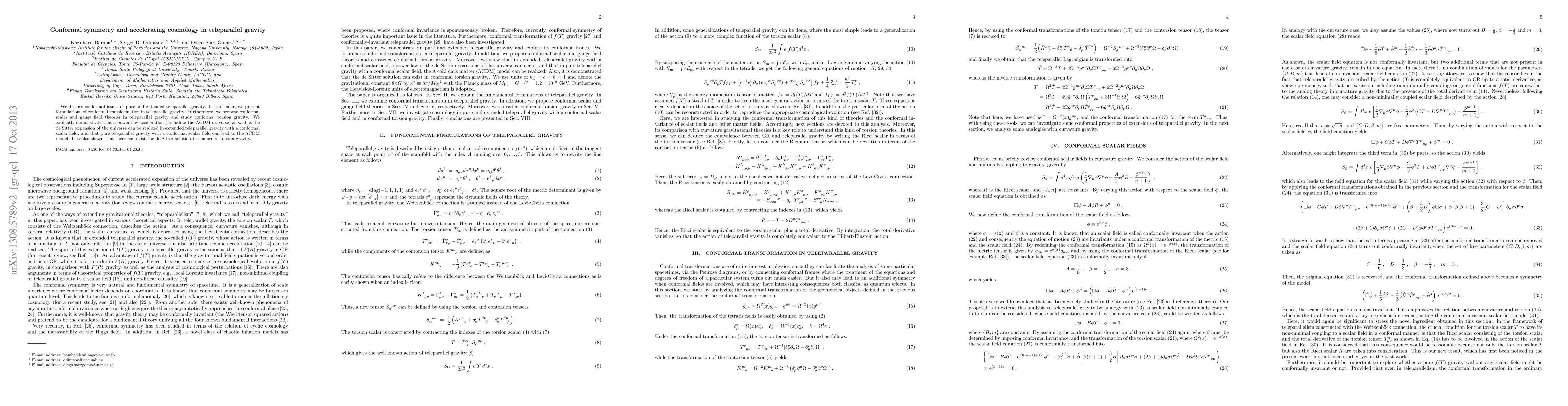 This paper explores conformal symmetry within the framework of teleparallel gravity, proposing new formulations and theories. It demonstrates that extended teleparallel gravity with a conformal scalar field can realize power-law acceleration and de Sitter expansion, while pure teleparallel gravity can lead to the $\Lambda$CDM model.