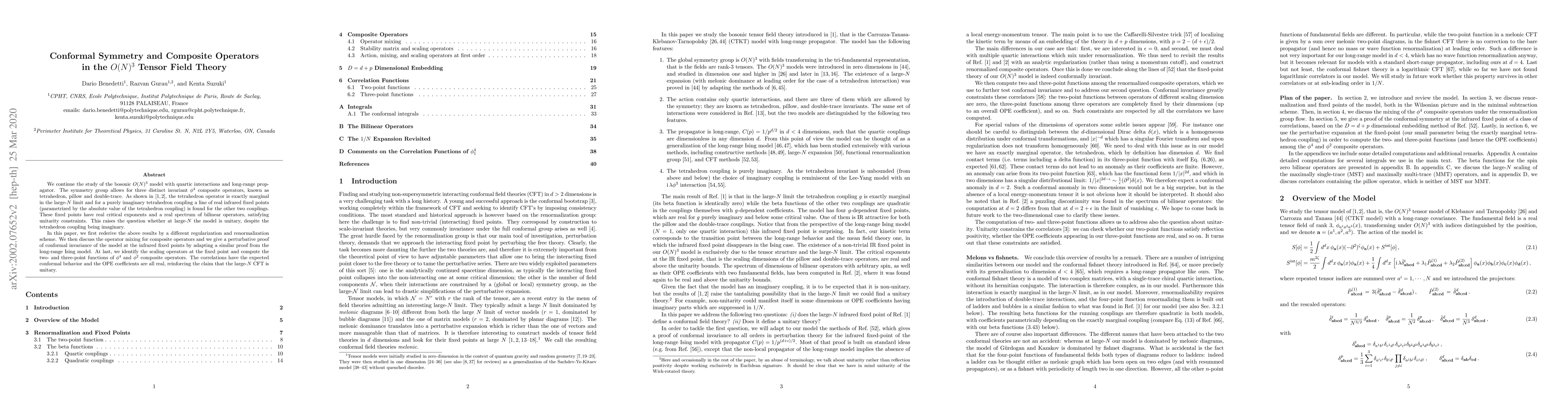 This paper reexamines the $O(N)^3$ tensor field theory, confirming the existence of a line of real infrared fixed points for composite operators despite an imaginary tetrahedron coupling. It provides a perturbative proof of conformal invariance and identifies scaling operators, showing that the two- and three-point functions of composite operators exhibit conformal behavior with real OPE coefficients, supporting the unitarity of the large-$N$ conformal field theory.