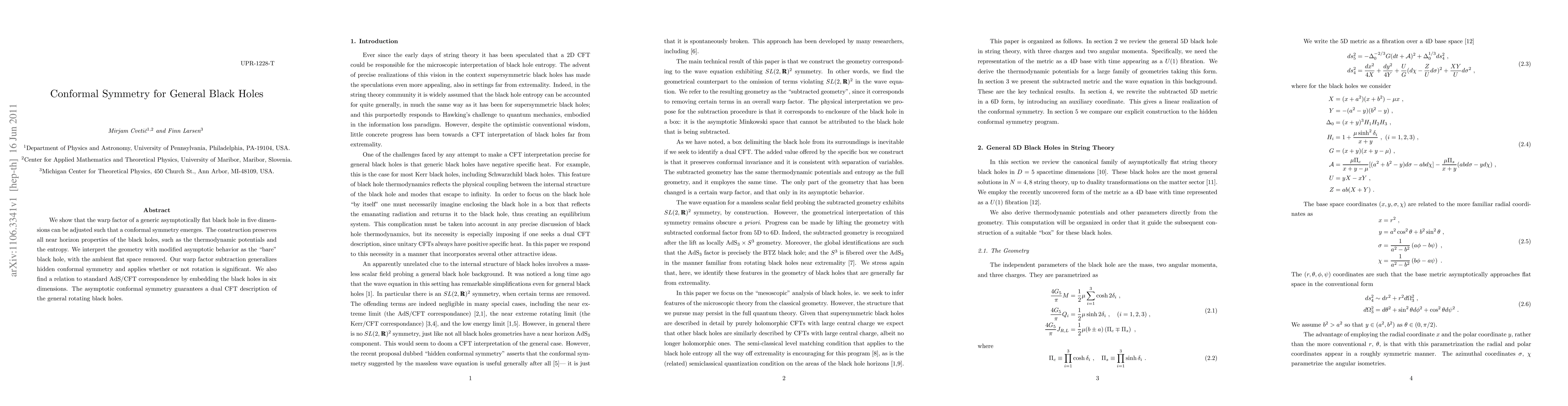 We show that the warp factor of a generic asymptotically flat black hole in five dimensions can be adjusted such that a conformal symmetry emerges. The construction preserves all near horizon properties of the black holes, such as the thermodynamic potentials and the entropy. We interpret the geometry with modified asymptotic behavior as the "bare" black hole, with the ambient flat space removed. Our warp factor subtraction generalizes hidden conformal symmetry and applies whether or not rotation is significant. We also find a relation to standard AdS/CFT correspondence by embedding the black holes in six dimensions. The asymptotic conformal symmetry guarantees a dual CFT description of the general rotating black holes.