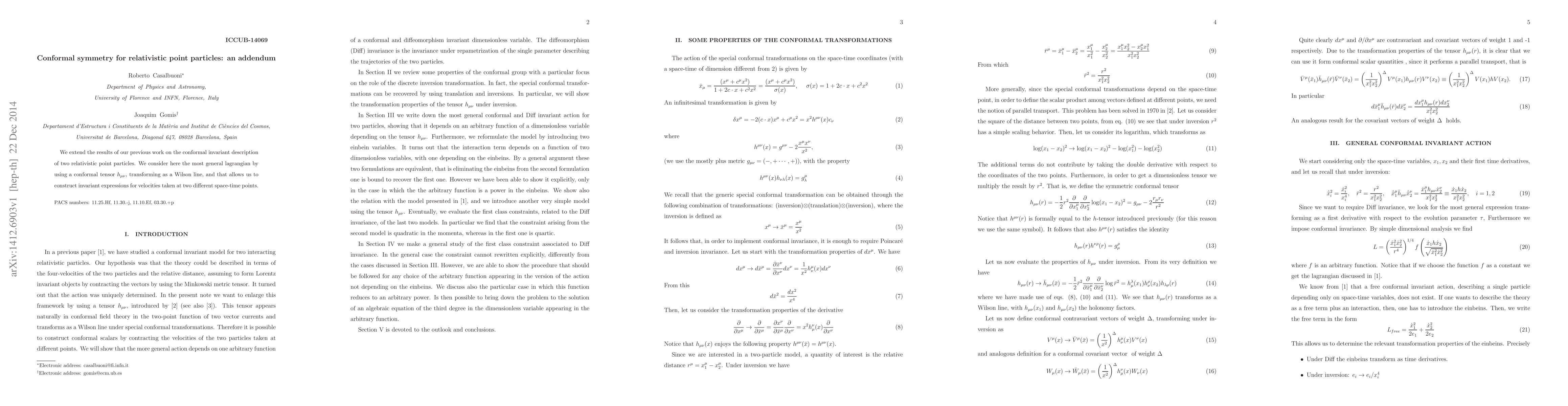 We extend the results of our previous work on the conformal invariant description of two relativistic point particles. We consider here the most general lagrangian by using a conformal tensor $h_{\mu\nu}$, transforming as a Wilson line, and that allows us to construct invariant expressions for velocities taken at two different space-time points.