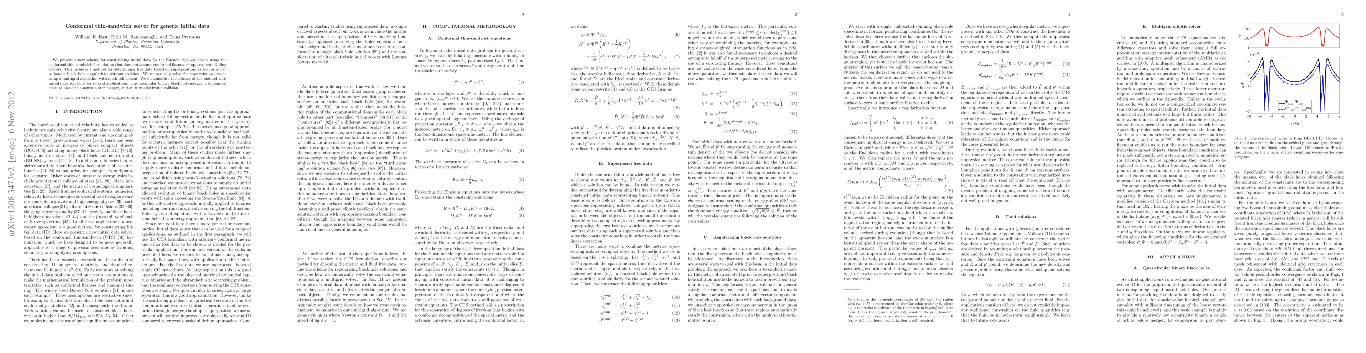 This paper introduces a novel conformal thin-sandwich solver for constructing initial data for the Einstein field equations without relying on conformal flatness or approximate Killing vectors. The method handles black hole singularities and demonstrates its effectiveness through applications in binary black hole mergers, capture mergers, and ultrarelativistic collisions.