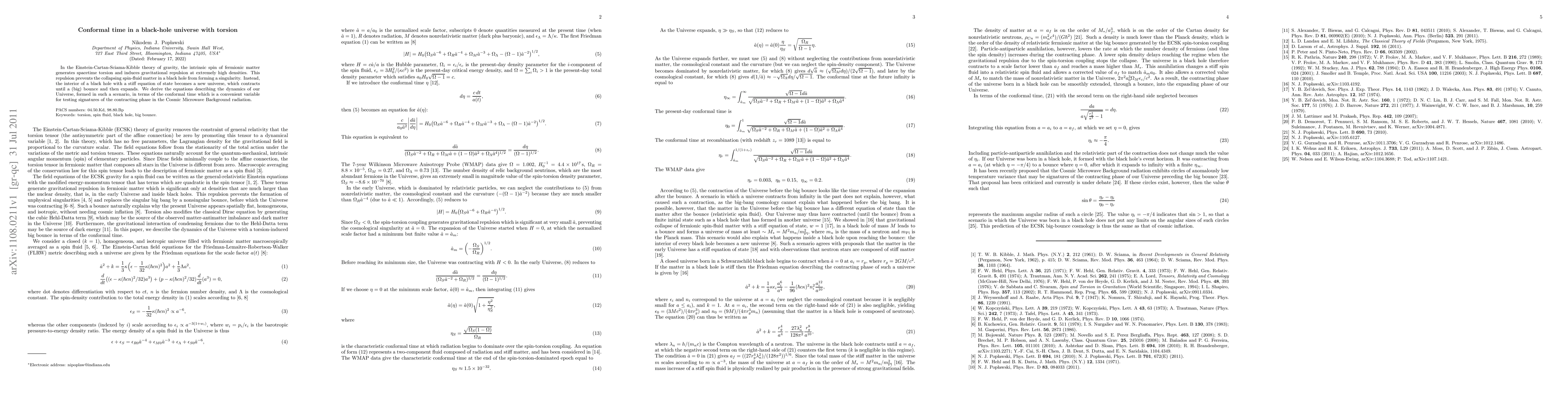 This paper explores the Einstein-Cartan-Sciama-Kibble theory of gravity, where torsion from fermionic matter's spin prevents black hole singularities, leading to a contracting universe inside black holes that undergoes a bounce and expands. The dynamics of this new universe are analyzed using conformal time to identify potential signatures in the Cosmic Microwave Background.