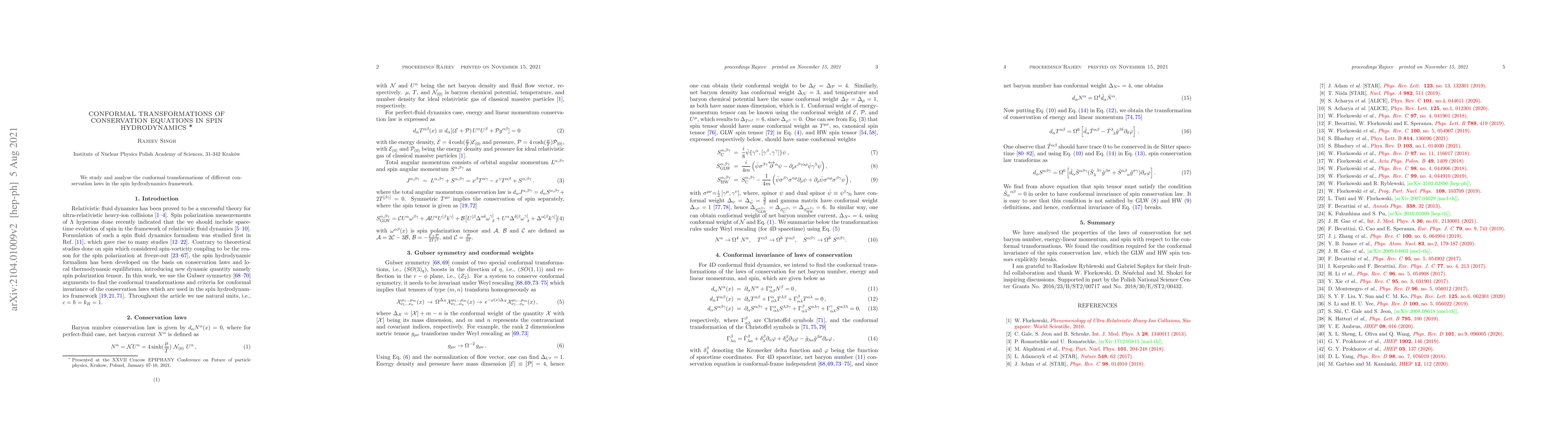 Summary: This paper investigates how conformal transformations affect various conservation laws within the context of spin hydrodynamics, providing insights into the theoretical framework's structural properties.