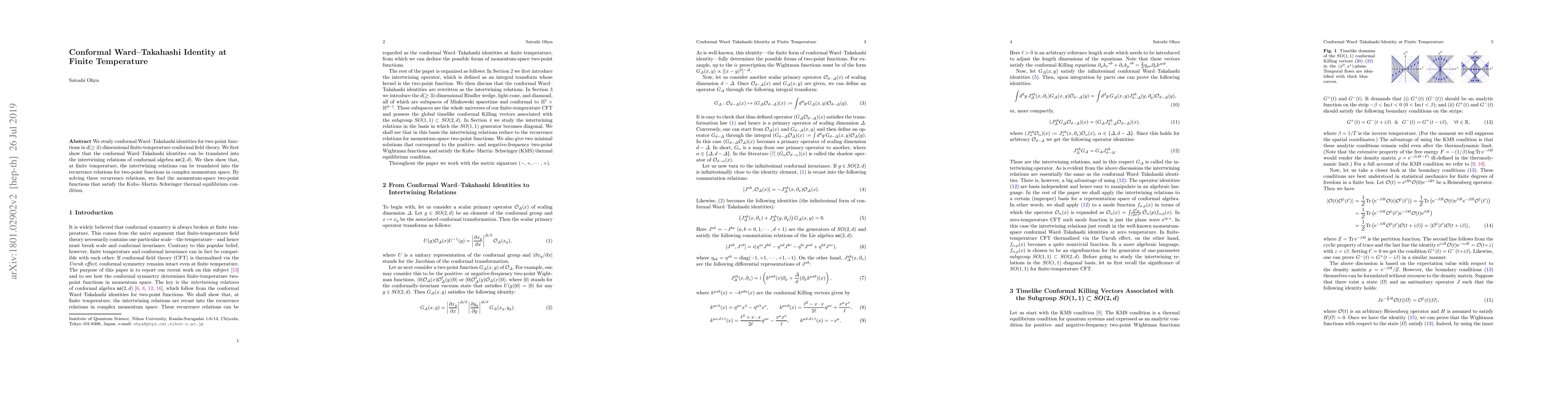 This paper explores conformal Ward-Takahashi identities in finite-temperature $d(\geq3)$-dimensional conformal field theories, translating them into intertwining relations of the $\mathfrak{so}(2,d)$ conformal algebra and deriving recurrence relations for two-point functions in complex momentum space, ultimately solving these to find the corresponding thermal equilibrium two-point functions.