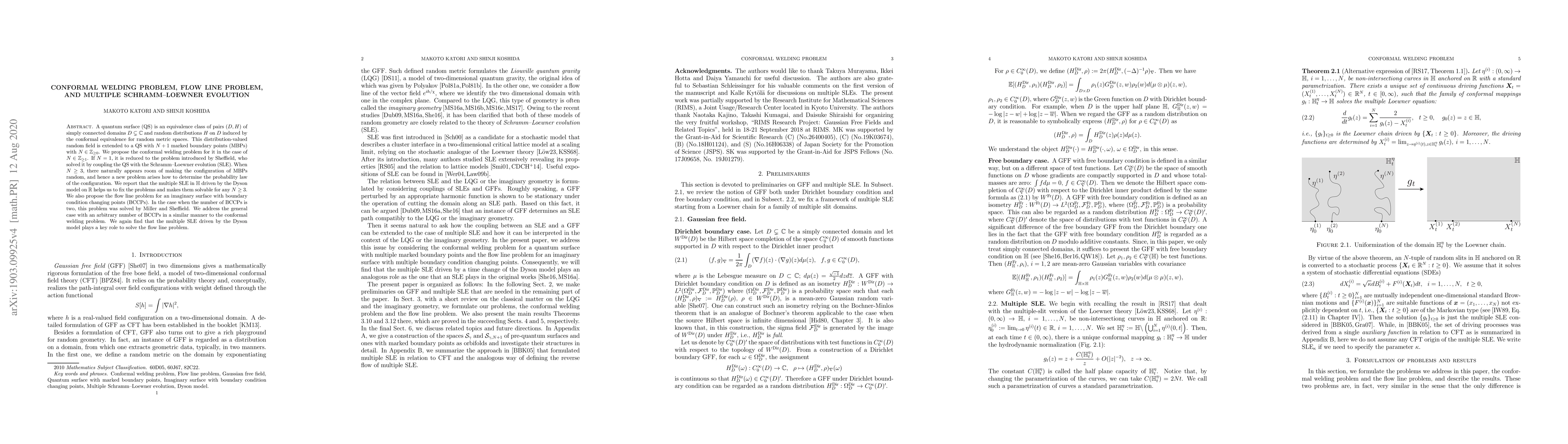 A quantum surface (QS) is an equivalence class of pairs $(D,H)$ of simply connected domains $D\subsetneq\mathbb{C}$ and random distributions $H$ on $D$ induced by the conformal equivalence for random metric spaces. This distribution-valued random field is extended to a QS with $N+1$ marked boundary points (MBPs) with $N\in\mathbb{Z}_{\ge 0}$. We propose the conformal welding problem for it in the case of $N\in\mathbb{Z}_{\ge 1}$. If $N=1$, it is reduced to the problem introduced by Sheffield, who solved it by coupling the QS with the Schramm--Loewner evolution (SLE). When $N \ge 3$, there naturally appears room of making the configuration of MBPs random, and hence a new problem arises how to determine the probability law of the configuration. We report that the multiple SLE in $\mathbb{H}$ driven by the Dyson model on $\mathbb{R}$ helps us to fix the problems and makes them solvable for any $N \ge 3$. We also propose the flow line problem for an imaginary surface with boundary condition changing points (BCCPs). In the case when the number of BCCPs is two, this problem was solved by Miller and Sheffield. We address the general case with an arbitrary number of BCCPs in a similar manner to the conformal welding problem. We again find that the multiple SLE driven by the Dyson model plays a key role to solve the flow line problem.