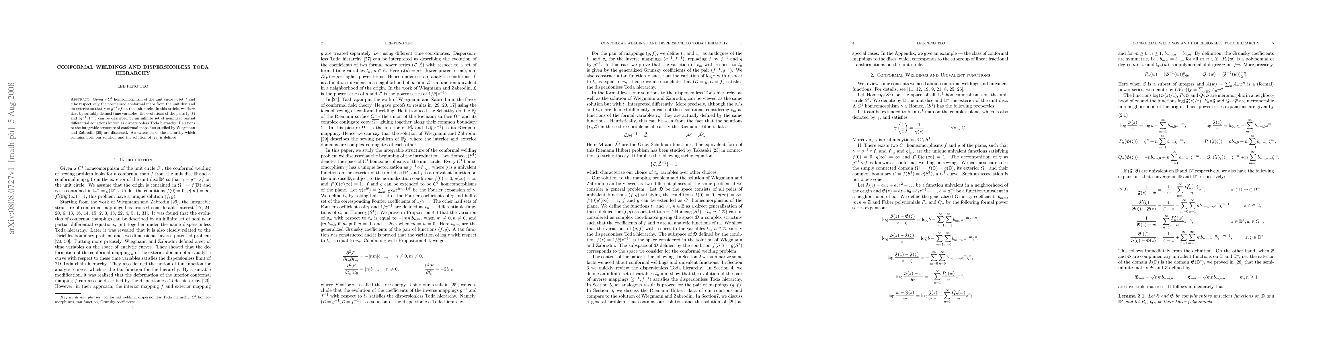 This paper explores the relationship between conformal weldings and the dispersionless Toda hierarchy, demonstrating how the evolutions of conformal maps can be described by an infinite set of nonlinear partial differential equations. The study extends the integrable structure of conformal maps and includes both the authors' solution and the solution from Wiegmann and Zabrodin's work.