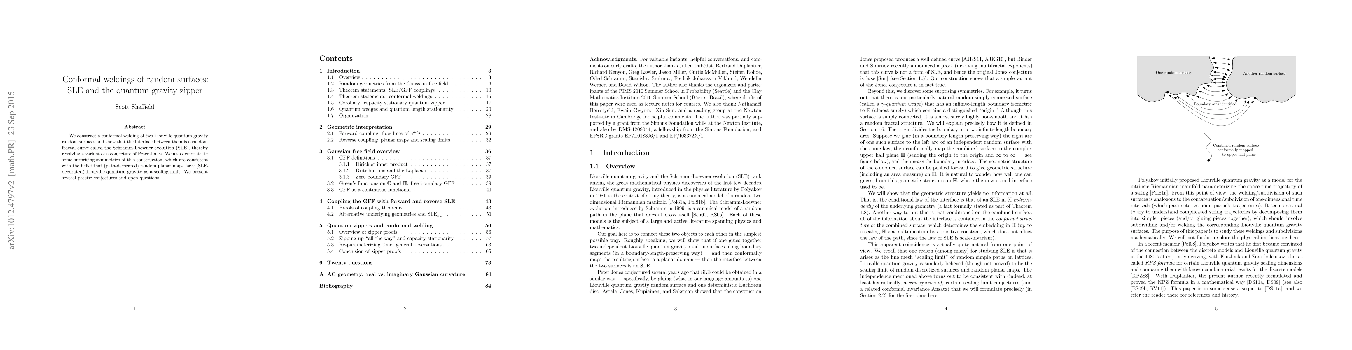 This paper constructs a conformal welding of two Liouville quantum gravity surfaces, demonstrating that their interface follows a Schramm-Loewner evolution (SLE) fractal curve, resolving a conjecture by Peter Jones. It also reveals surprising symmetries and proposes conjectures about the scaling limit of random planar maps to SLE-decorated Liouville quantum gravity.