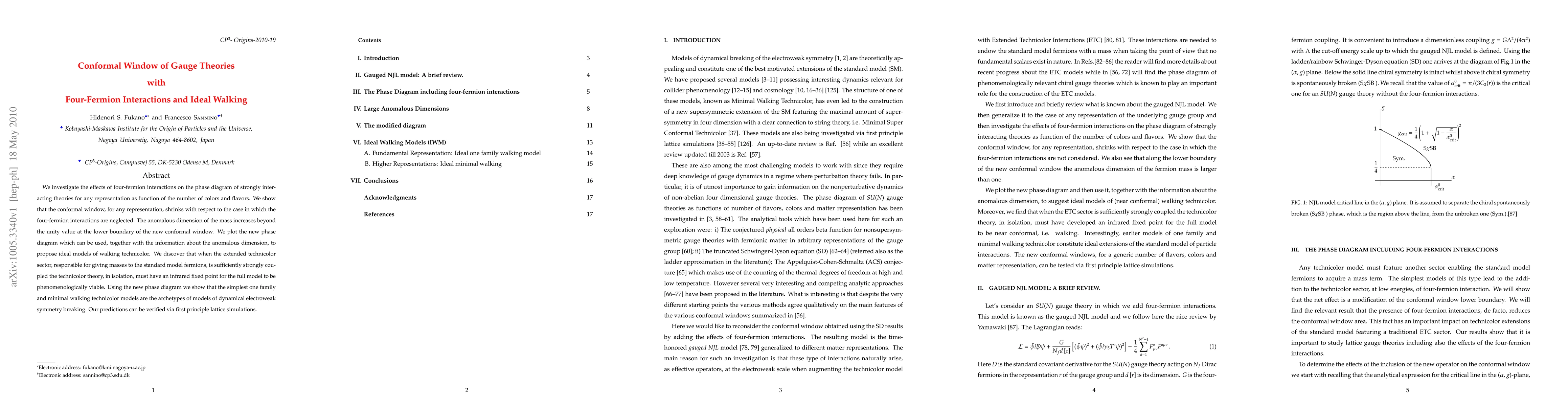 We investigate the effects of four-fermion interactions on the phase diagram of strongly interacting theories for any representation as function of the number of colors and flavors. We show that the conformal window, for any representation, shrinks with respect to the case in which the four-fermion interactions are neglected. The anomalous dimension of the mass increases beyond the unity value at the lower boundary of the new conformal window. We plot the new phase diagram which can be used, together with the information about the anomalous dimension, to propose ideal models of walking technicolor. We discover that when the extended technicolor sector, responsible for giving masses to the standard model fermions, is sufficiently strongly coupled the technicolor theory, in isolation, must have an infrared fixed point for the full model to be phenomenologically viable. Using the new phase diagram we show that the simplest one family and minimal walking technicolor models are the archetypes of models of dynamical electroweak symmetry breaking. Our predictions can be verified via first principle lattice simulations.