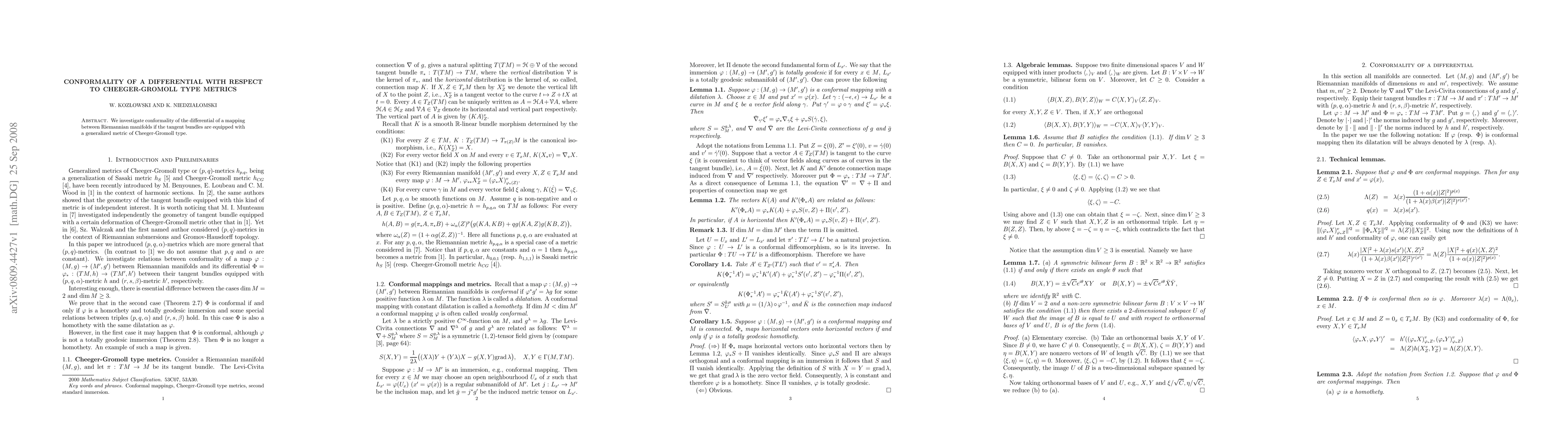 We investigate conformality of the differential of a mapping between Riemannian manifolds if the tangent bundles are equipped with a generalized metric of Cheeger-Gromoll type.
