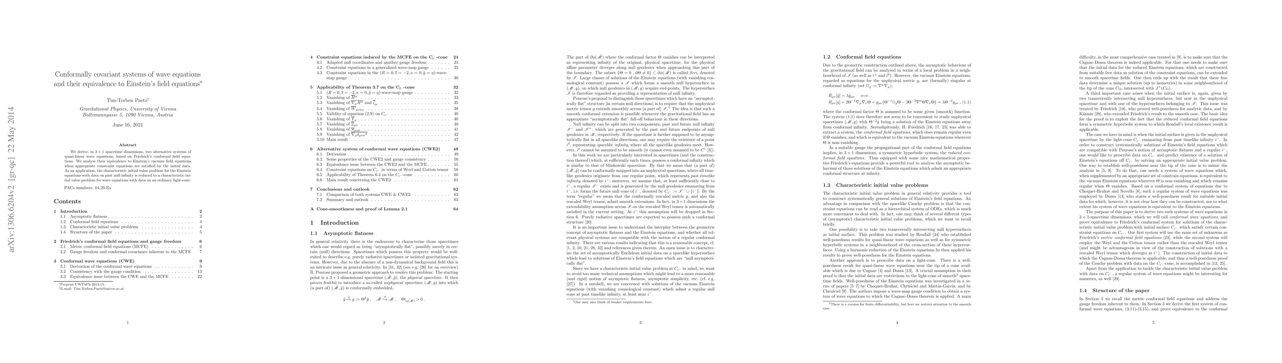 We derive, in 3+1 spacetime dimensions, two alternative systems of quasi-linear wave equations, based on Friedrich's conformal field equations. We analyse their equivalence to Einstein's vacuum field equations when appropriate constraint equations are satisfied by the initial data. As an application, the characteristic initial value problem for the Einstein equations with data on past null infinity is reduced to a characteristic initial value problem for wave equations with data on an ordinary light-cone.