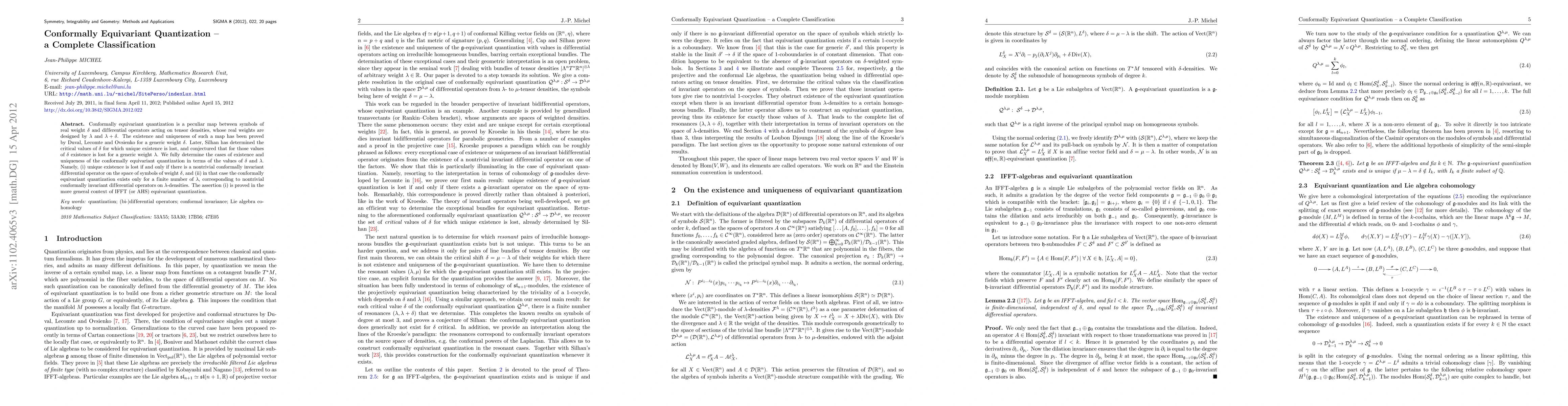 The paper presents a detailed analysis of conformally equivariant quantization, leading to a precise characterization of existence and uniqueness conditions.