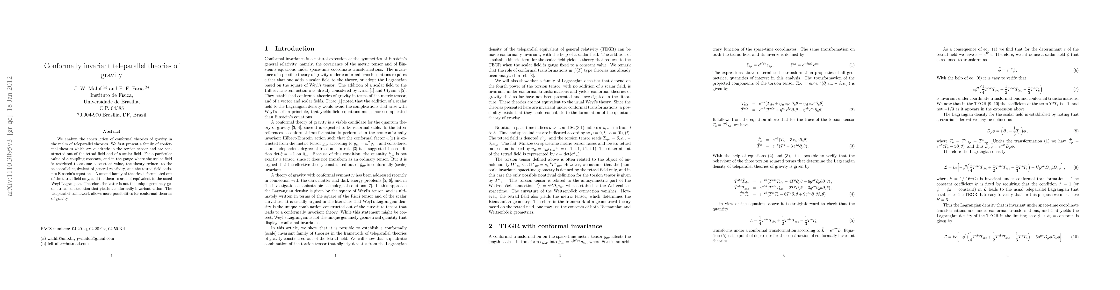 This paper explores conformally invariant teleparallel theories of gravity, constructing quadratic theories based on the torsion tensor and a scalar field. It reveals that a specific coupling constant and gauge condition can reduce the theory to the teleparallel equivalent of general relativity, while also presenting a second theory that is not equivalent to the standard Weyl Lagrangian, indicating the teleparallel framework offers diverse conformal gravity formulations.