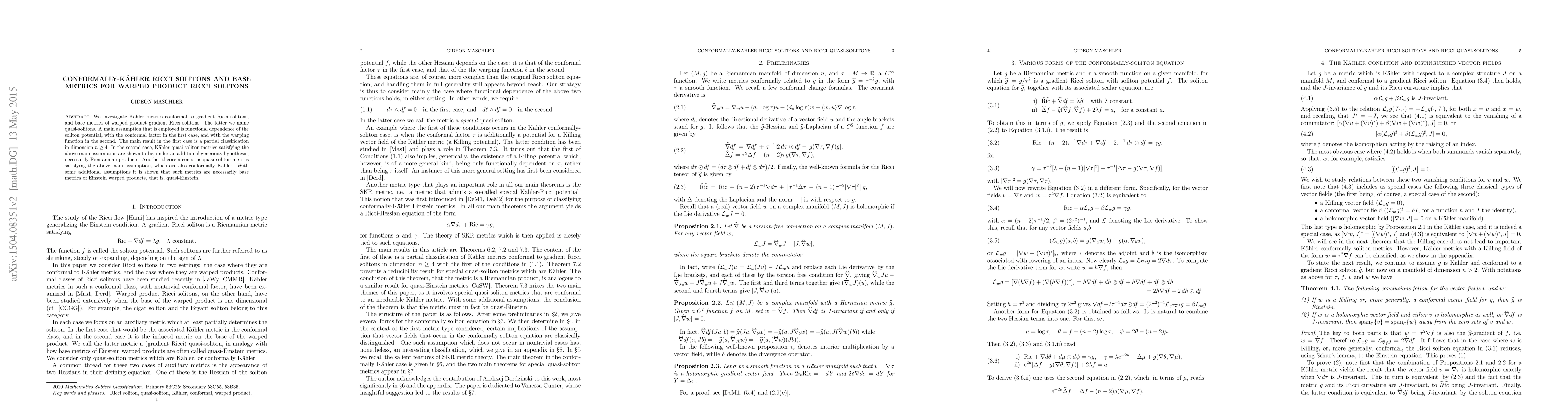 We investigate K\"ahler metrics conformal to gradient Ricci solitons, and base metrics of warped product gradient Ricci solitons. The latter we name quasi-solitons. A main assumption that is employed is functional dependence of the soliton potential, with the conformal factor in the first case, and with the warping function in the second. The main result in the first case is a partial classification in dimension $n\geq 4$. In the second case, K\"ahler quasi-soliton metrics satisfying the above main assumption are shown to be, under an additional genericity hypothesis, necessarily Riemannian products. Another theorem concerns quasi-soliton metrics satisfying the above main assumption, which are also conformally K\"ahler. With some additional assumptions it is shown that such metrics are necessarily base metrics of Einstein warped products, that is, quasi-Einstein.