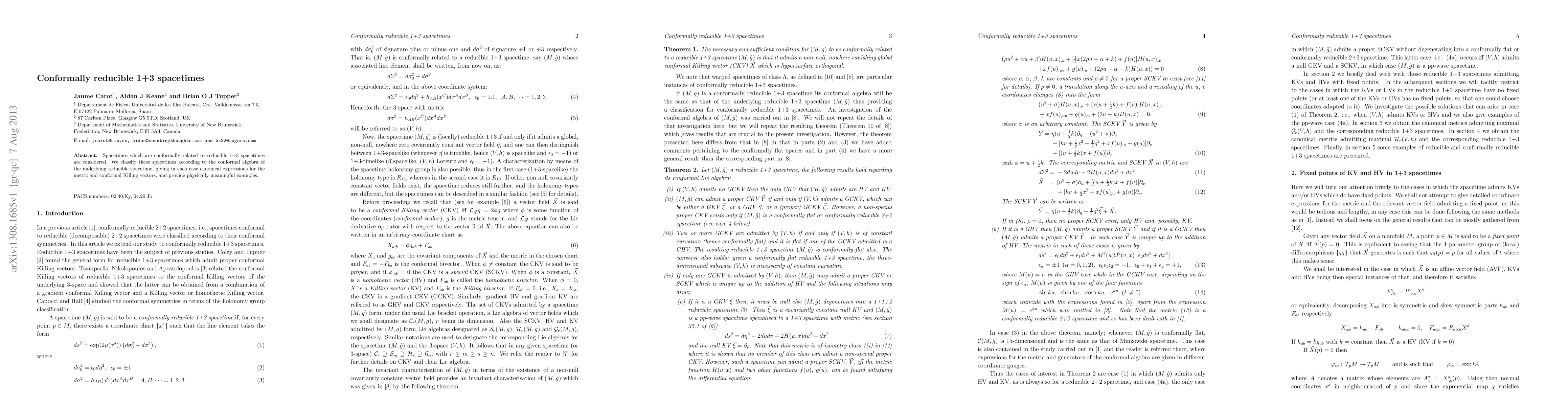 Spacetimes which are conformally related to reducible 1+3 spacetimes are considered. We classify these spacetimes according to the conformal algebra of the underlying reducible spacetime, giving in each case canonical expressions for the metric and conformal Killing vectors, and provide physically meaningful examples.
