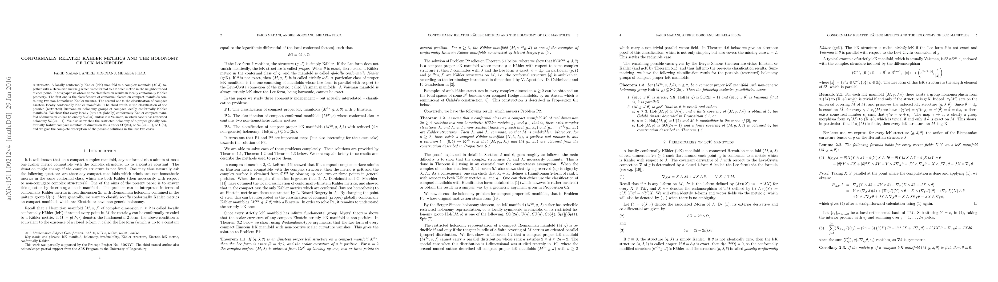 This paper classifies conformal classes, Einstein lcK manifolds, and the possible Riemannian holonomy groups of compact lcK manifolds. It finds that non-Vaisman lcK manifolds have holonomy $\mathrm{SO}(2n)$, while Vaisman manifolds have $\mathrm{SO}(2n-1)$ holonomy, and globally conformally K\"ahler manifolds have holonomy $\mathrm{SO}(2n)$, $\mathrm{SO}(2n-1)$, or $\mathrm{U}(n)$.