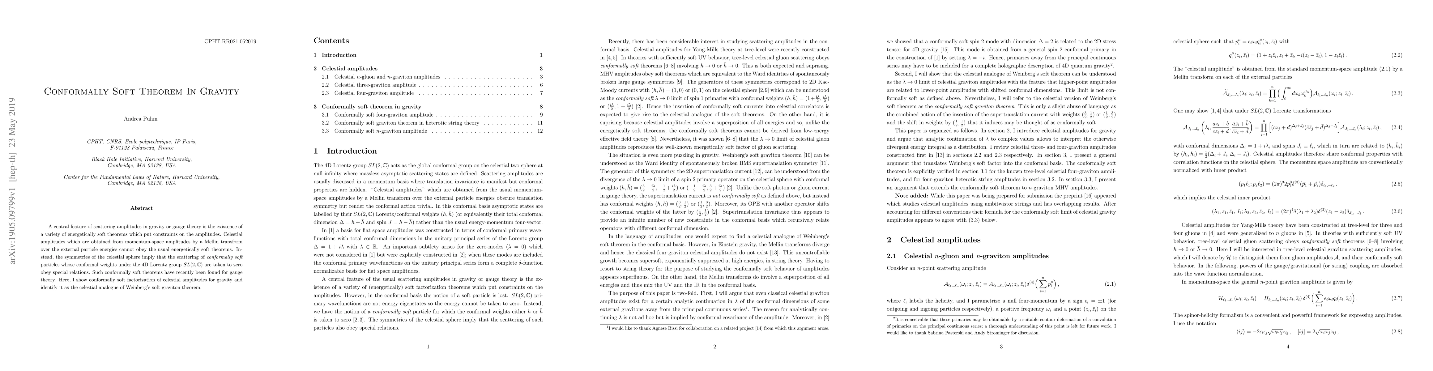 This paper explores the conformally soft theorem in gravity, demonstrating that celestial amplitudes follow special relations when conformally soft particles are considered. It establishes the conformally soft factorization of celestial amplitudes in gravity, analogous to Weinberg's soft graviton theorem.
