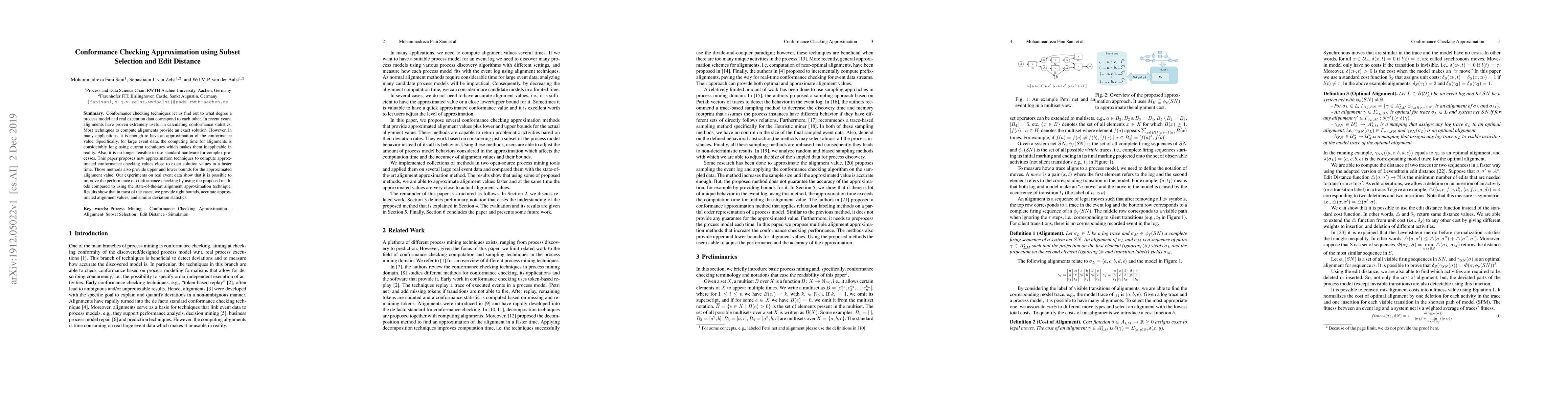 This paper proposes new approximation techniques for conformance checking that provide fast and accurate results, improving performance compared to existing methods.