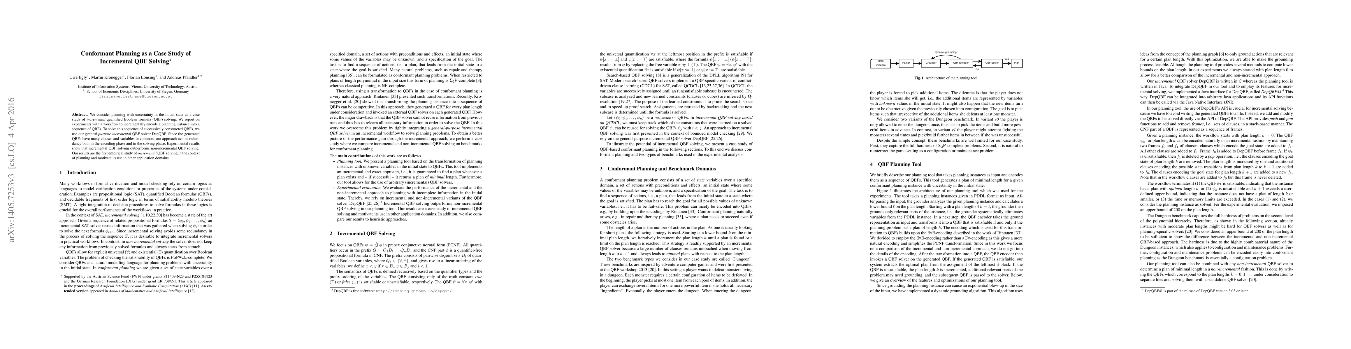 The work is novel in applying incremental QBF solving to conformant planning, presenting a general-purpose incremental QBF solver (DepQBF), and providing an extensible Java interface (DepQBF4J) for integration with arbitrary Java applications.