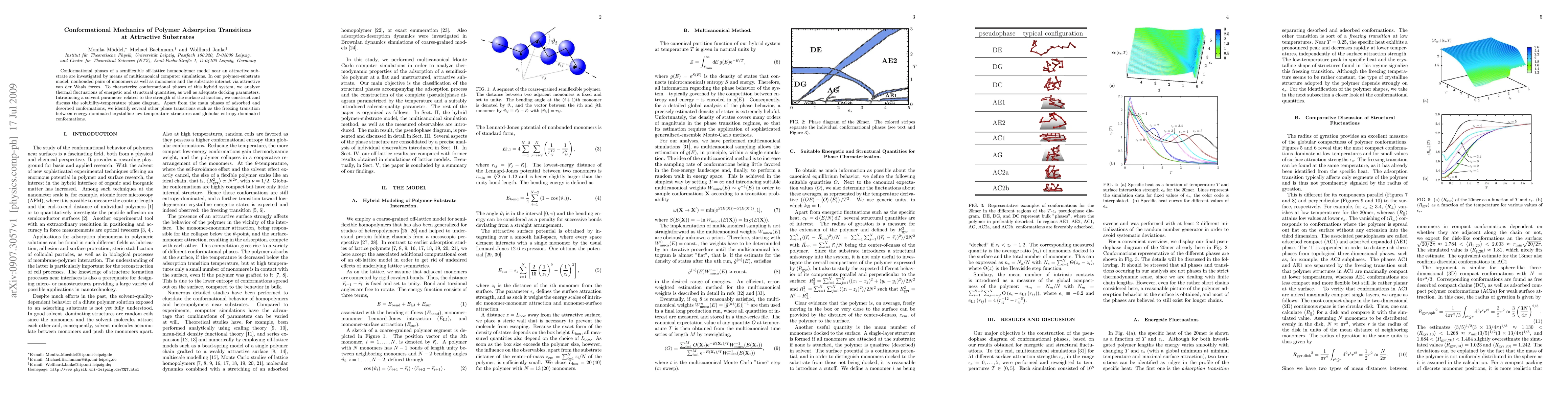 This paper investigates the conformational phases of semiflexible polymers near attractive substrates using multicanonical simulations, identifying transitions like adsorption, desorption, and freezing, and constructs a solubility-temperature phase diagram based on thermal fluctuations and interaction strengths.