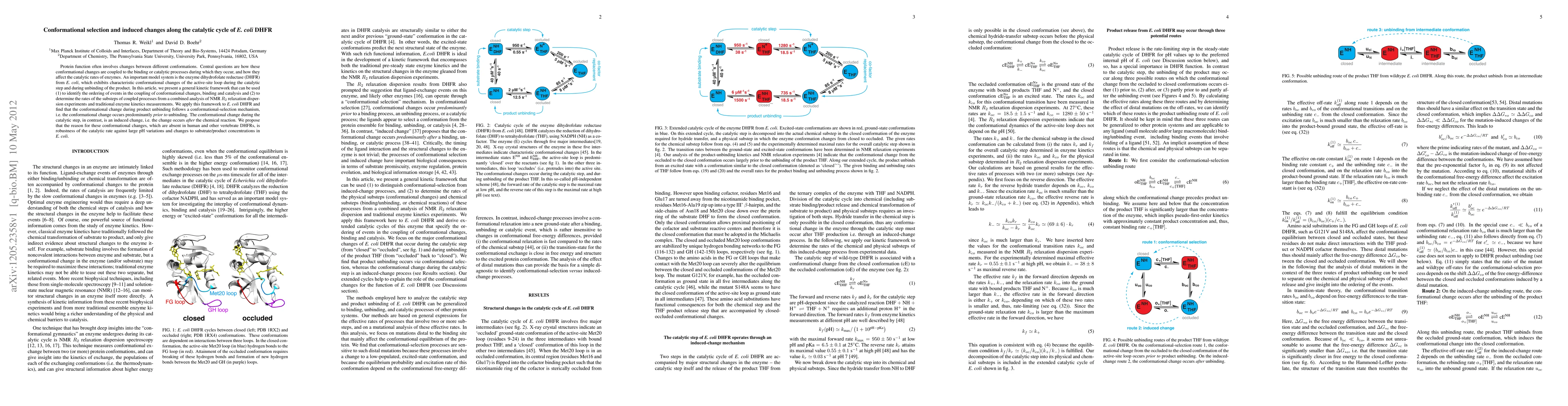 This paper develops a kinetic framework to analyze conformational changes in the enzyme E. coli DHFR, revealing that the conformational change during product unbinding follows a conformational-selection mechanism, while the change during catalysis is induced. The study suggests these unique conformational changes enhance the enzyme's robustness under varying pH and substrate/product conditions.