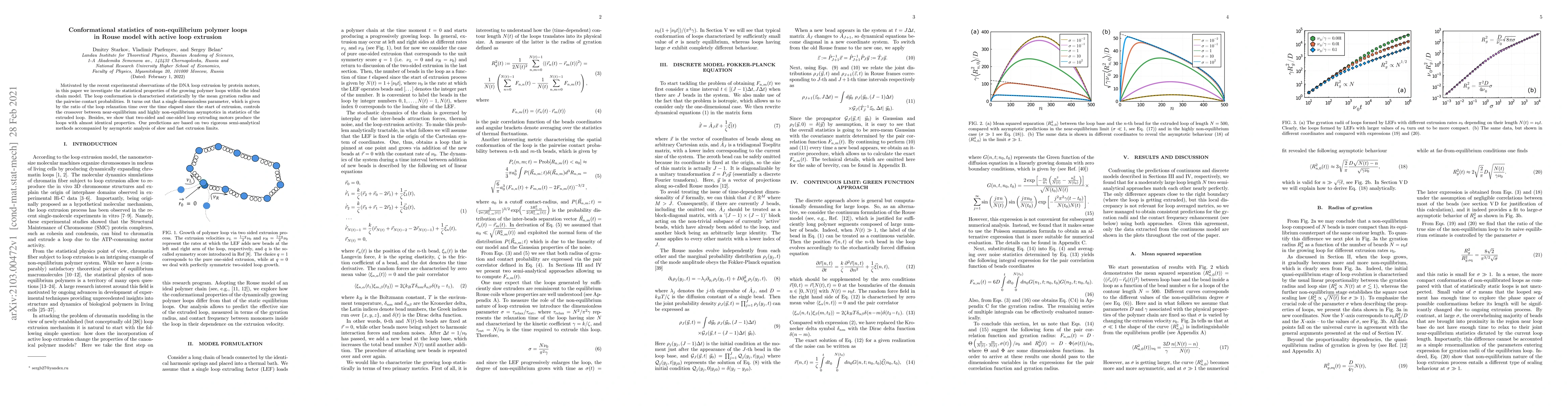 The paper presents two rigorous semi-analytical methods and asymptotic analysis to characterize the conformational statistics of non-equilibrium polymer loops under active extrusion.
