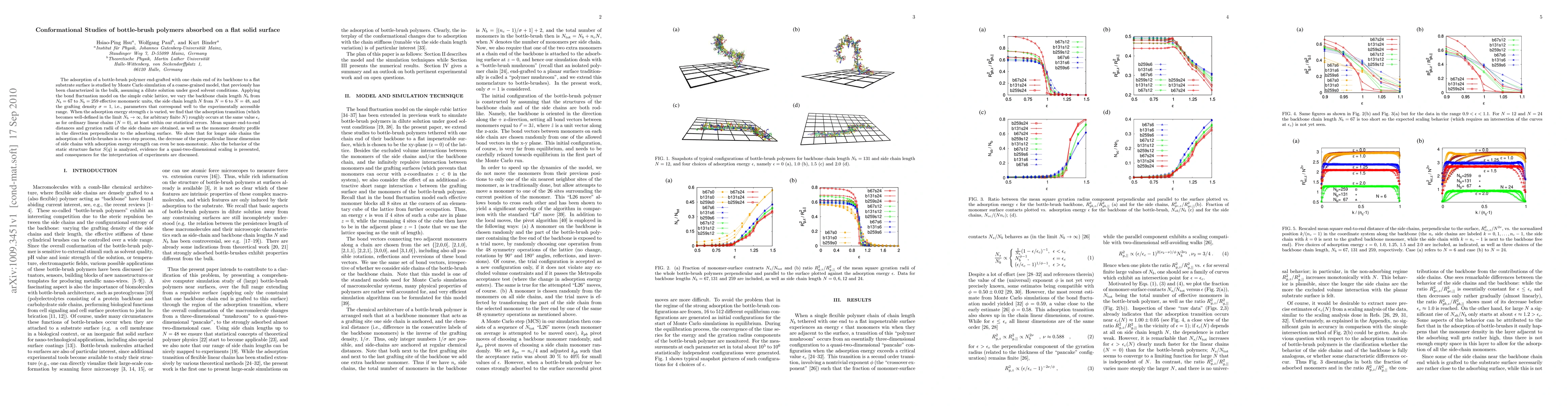 The adsorption of a bottle-brush polymer end-grafted with one chain end of its backbone to a flat substrate surface is studied by Monte Carlo simulation of a coarse-grained model, that previously has been characterized in the bulk, assuming a dilute solution under good solvent conditions. Applying the bond fluctuation model on the simple cubic lattice, we vary the backbone chain length $N_b$ from $N_b=67$ to $N_b = 259$ effective monomeric units, the side chain length $N$ from N=6 to N=48, and the grafting density $\sigma=1$, i.e., parameters that correspond well to the experimentally accessible range. When the adsorption energy strength $\epsilon$ is varied, we find that the adsorption transition (which becomes well-defined in the limit $N_b \rightarrow \infty$, for arbitrary finite $N$) roughly occurs at the same value $\epsilon_c$ as for ordinary linear chains (N=0), at least within our statistical errors. Mean square end-to-end distances and gyration radii of the side chains are obtained, as well as the monomer density profile in the direction perpendicular to the adsorbing surface. We show that for longer side chains the adsorption of bottle-brushes is a two step process, the decrease of the perpendicular linear dimension of side chains with adsorption energy strength can even be non-monotonic. Also the behavior of the static structure factor $S(q)$ is analyzed, evidence for a quasi-two-dimensional scaling is presented, and consequences for the interpretation of experiments are discussed.
