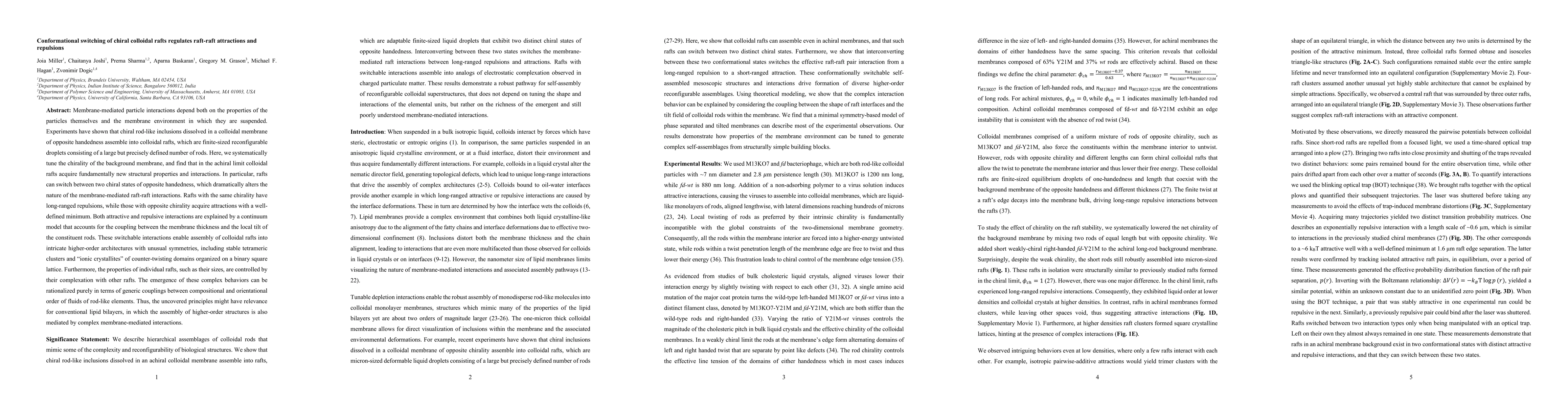 This research demonstrates that tuning the chirality of a colloidal membrane can switch colloidal rafts between two chiral states, altering their interactions from repulsion to attraction. This switch enables the formation of intricate structures, offering insights relevant to lipid bilayer assembly.