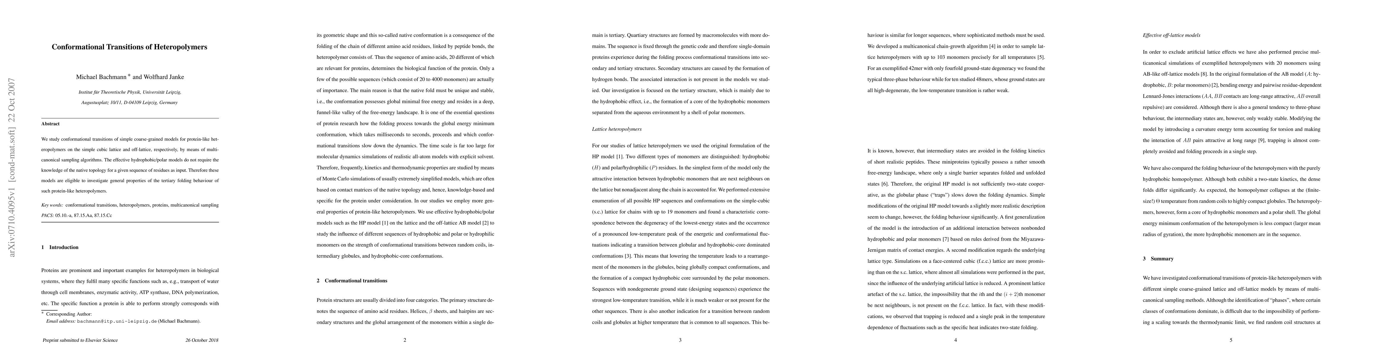 Multicanonical sampling algorithms were used to study conformational transitions of protein-like heteropolymers on simple cubic lattice and off-lattice models.