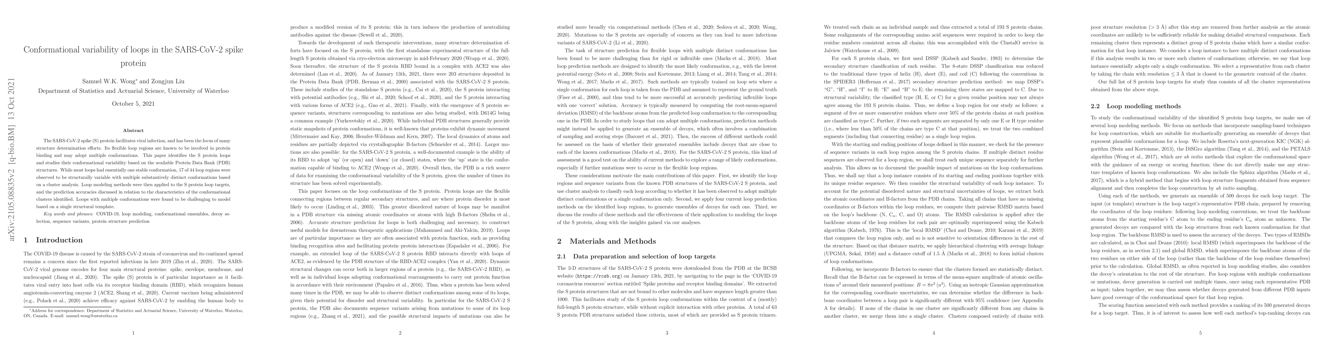 This paper investigates the conformational variability of loops in the SARS-CoV-2 spike protein, identifying 17 out of 44 loop regions that adopt multiple distinct conformations. Loop modeling methods reveal challenges in accurately predicting structures for these variable loops.