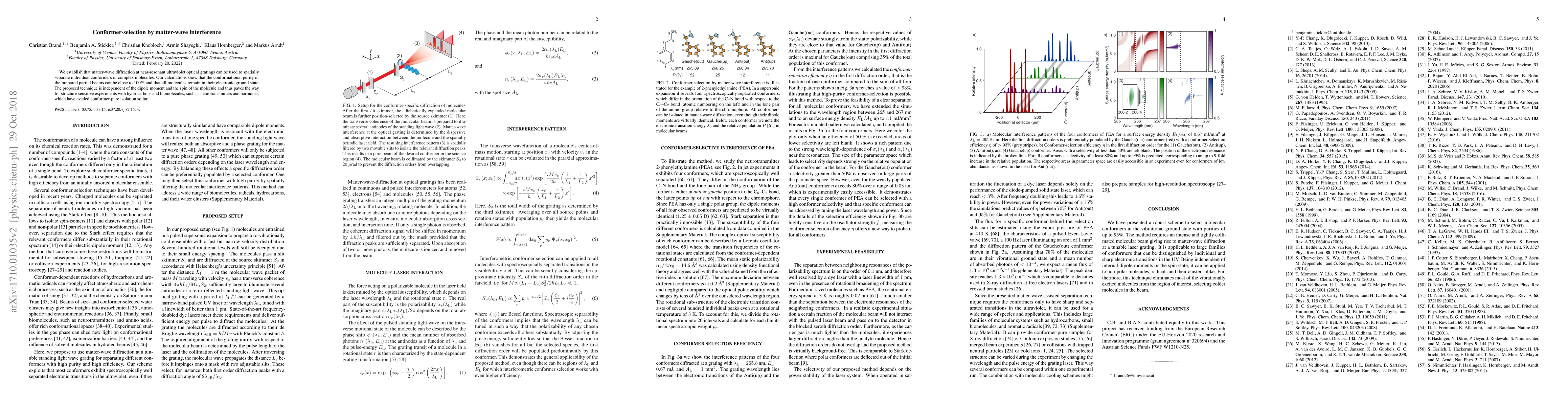We establish that matter-wave interference at near-resonant ultraviolet optical gratings can be used to spatially separate individual conformers of complex molecules. Our calculations show that the conformational purity of the prepared beam can be close to 100% and that all molecules remain in their electronic ground state. The proposed technique is independent of the dipole moment and the spin of the molecule and thus paves the way for structure-sensitive experiments with hydrocarbons and biomolecules, such as neurotransmitters and hormones, which evaded conformer-pure isolation so far