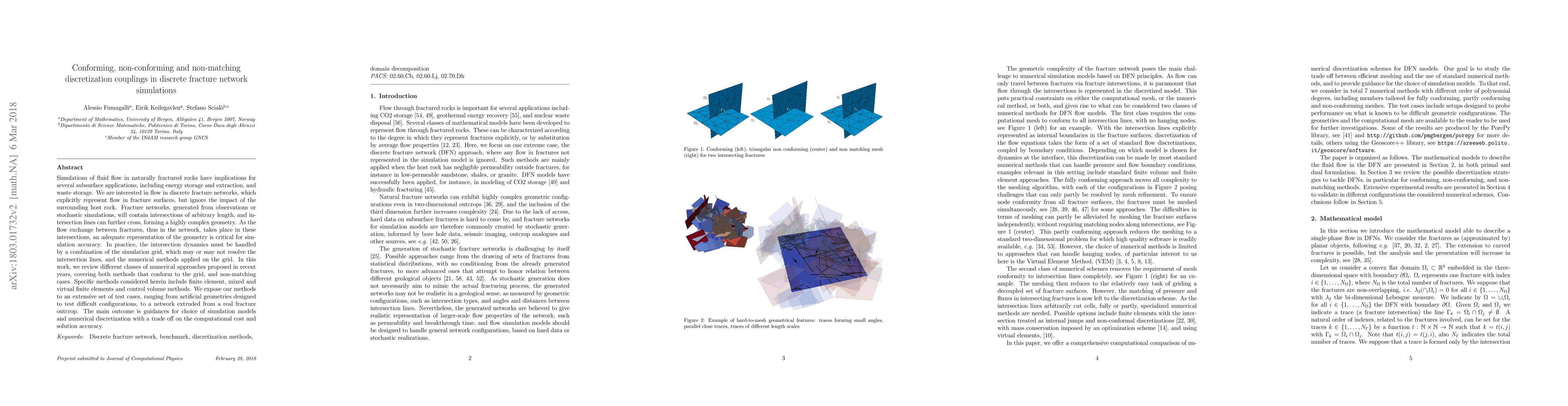 This paper reviews methods for simulating fluid flow in complex discrete fracture networks, crucial for subsurface applications. It tests various numerical approaches, balancing computational cost and accuracy, providing guidance for choosing simulation models and discretization techniques.