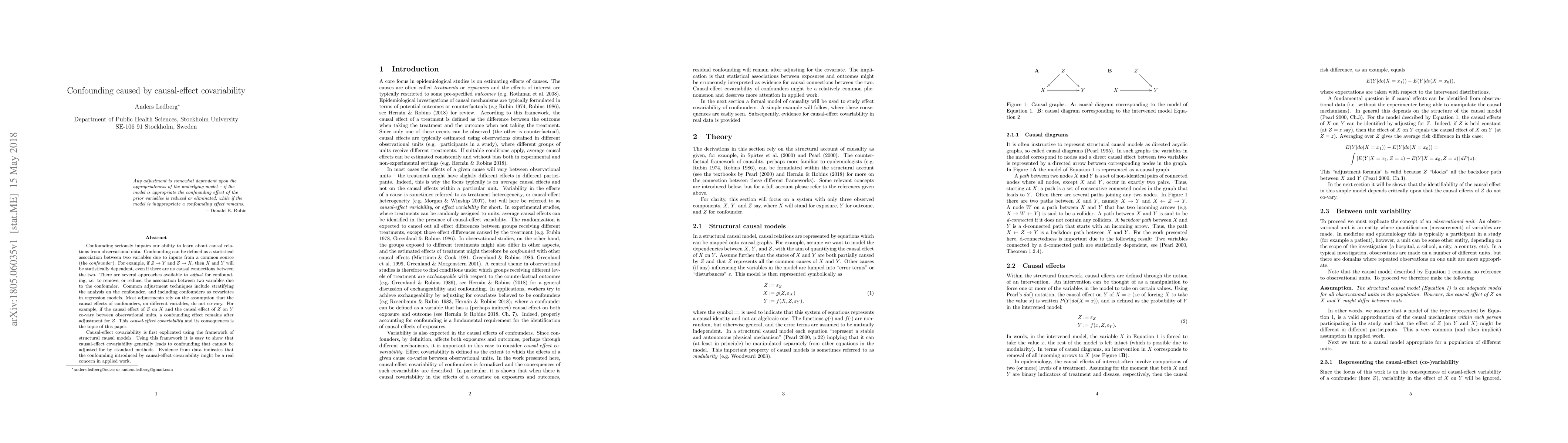 This paper explores how causal-effect covariability—where the causal effects of a confounder on different variables vary together—can lead to confounding that standard adjustment techniques cannot resolve. It uses structural causal models to illustrate this issue and highlights its potential impact on observational data analysis.