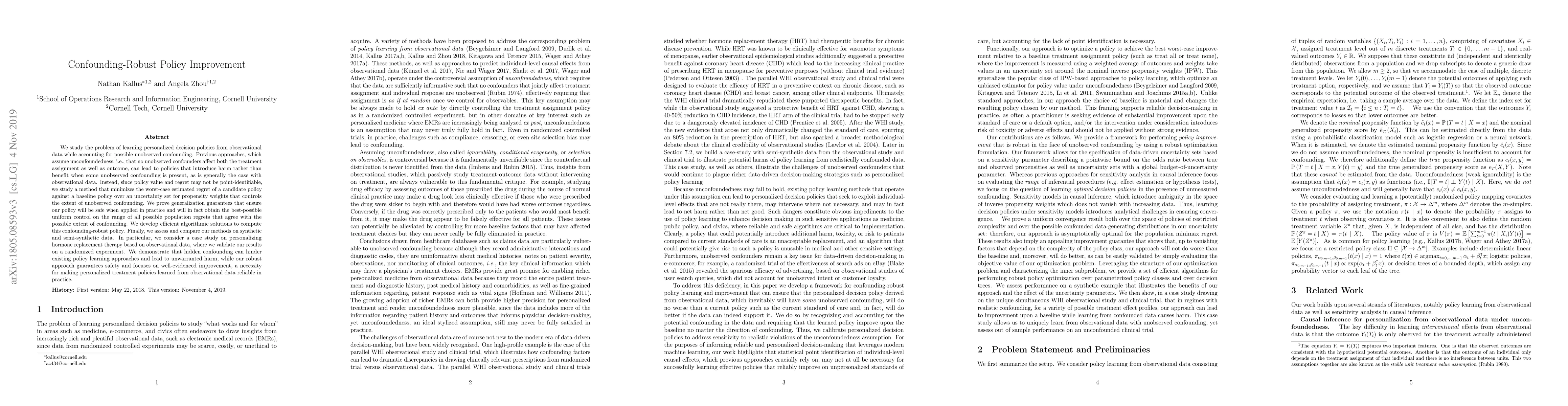This paper proposes a method for learning personalized decision policies from observational data that accounts for unobserved confounding, minimizing worst-case regret and ensuring safety. It develops algorithms to compute these robust policies and demonstrates their effectiveness in a case study on hormone replacement therapy, showing that existing approaches can lead to harm due to hidden confounding.