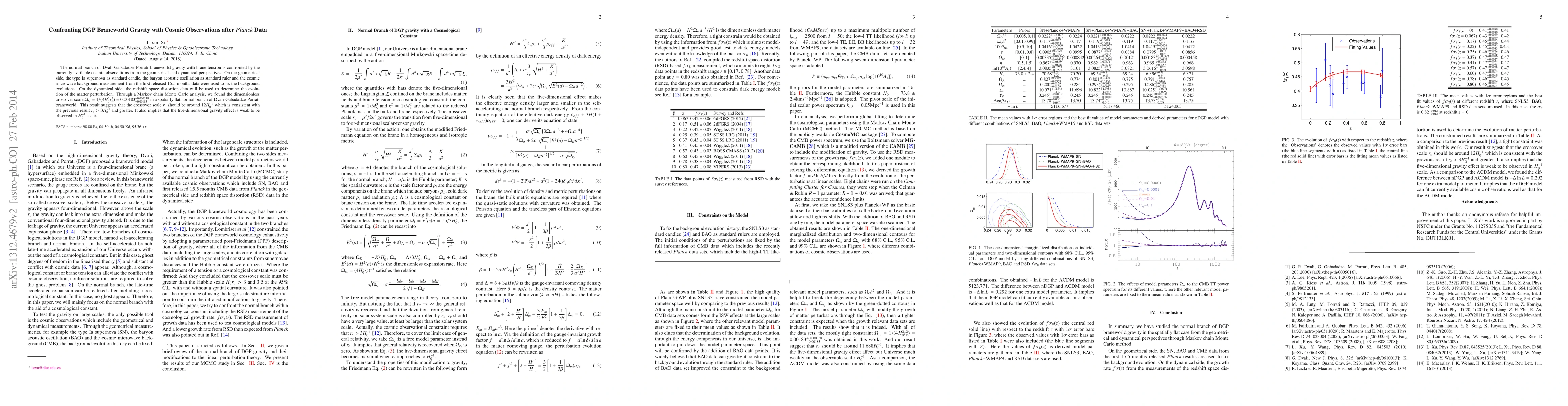 The normal branch of Dvali-Gabadadze-Porrati braneworld gravity with brane tension is confronted by the currently available cosmic observations from the geometrical and dynamical perspectives. On the geometrical side, the type Ia supernova as standard candle, the baryon acoustic oscillation as standard ruler and the cosmic microwave background measurement from the first released 15.5 months data were used to fix the background evolutions. On the dynamical side, the redshift space distortion data will be used to determine the evolution of the matter perturbation. Through a Markov chain Monte Carlo analysis, we found the dimensionless crossover scale $\Omega_{r_c}=1/(4H^2_0r^2_{c})=0.00183_{-0.00183}^{+0.000338}$ in a spatially flat normal branch of Dvali-Gabadadze-Porrati braneworld. This result suggests that the crossover scale $r_c$ should be around $12H^{-1}_0$ which is consistent with the previous result $r_c>3H^{-1}_0$ and greater. It also implies that the five-dimensional gravity effect is weak to be observed in $H^{-1}_0$ scale.