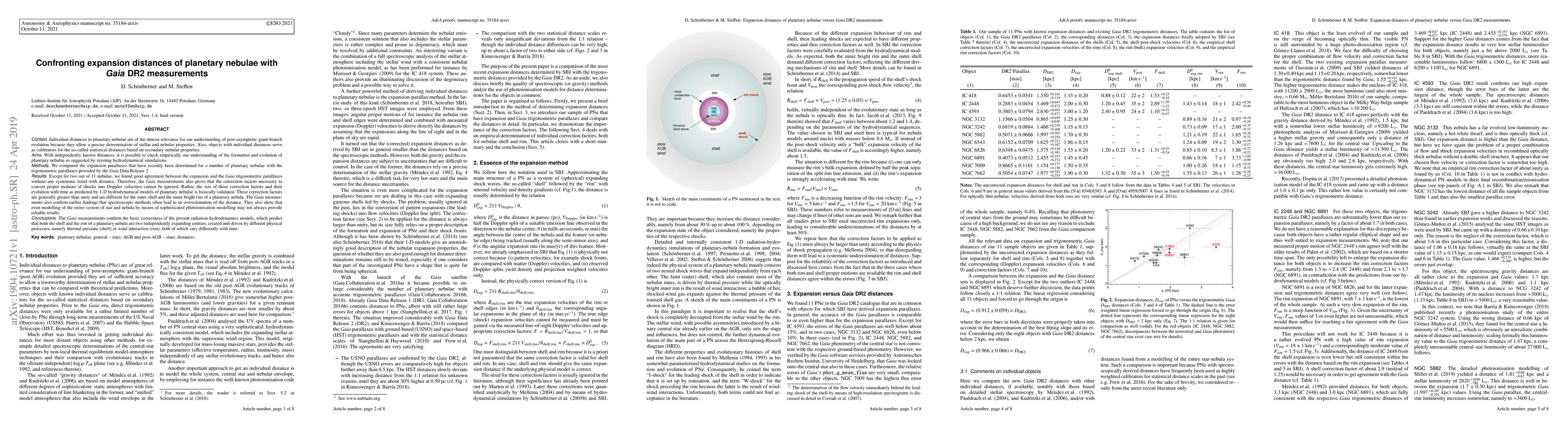 This paper compares Gaia DR2 trigonometric parallaxes with expansion parallaxes for planetary nebulae to validate distance measurements and correction factors for shock proper motions. The results show good agreement and confirm the necessity of these correction factors, supporting current hydrodynamical models of planetary nebulae.