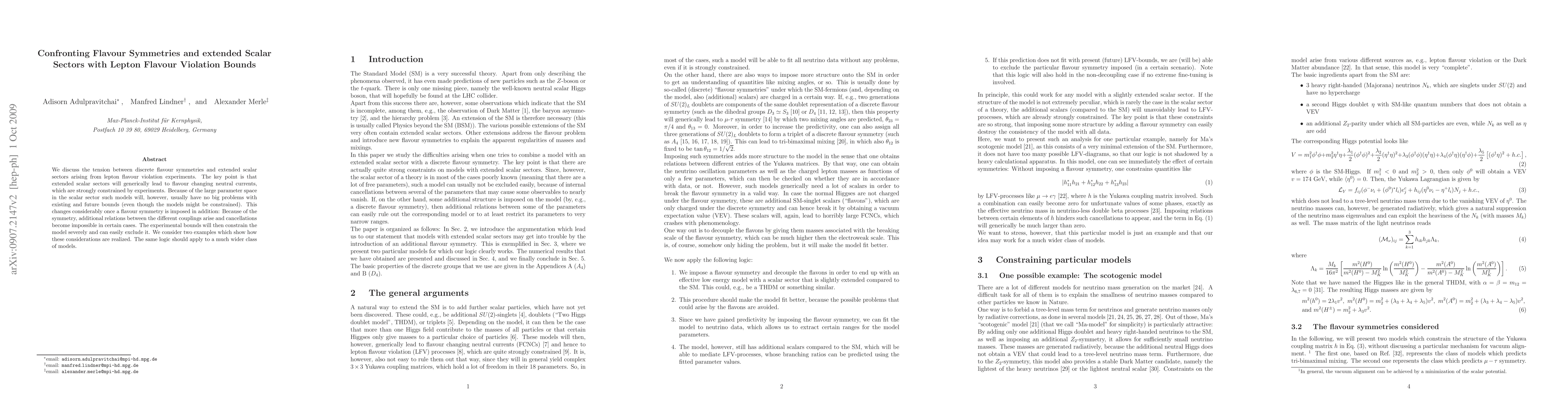 This paper explores the conflict between discrete flavour symmetries and extended scalar sectors in light of lepton flavour violation experiments. While extended scalar sectors can accommodate a large parameter space, imposing a flavour symmetry imposes additional relations that can lead to severe constraints, potentially excluding the model due to experimental bounds.