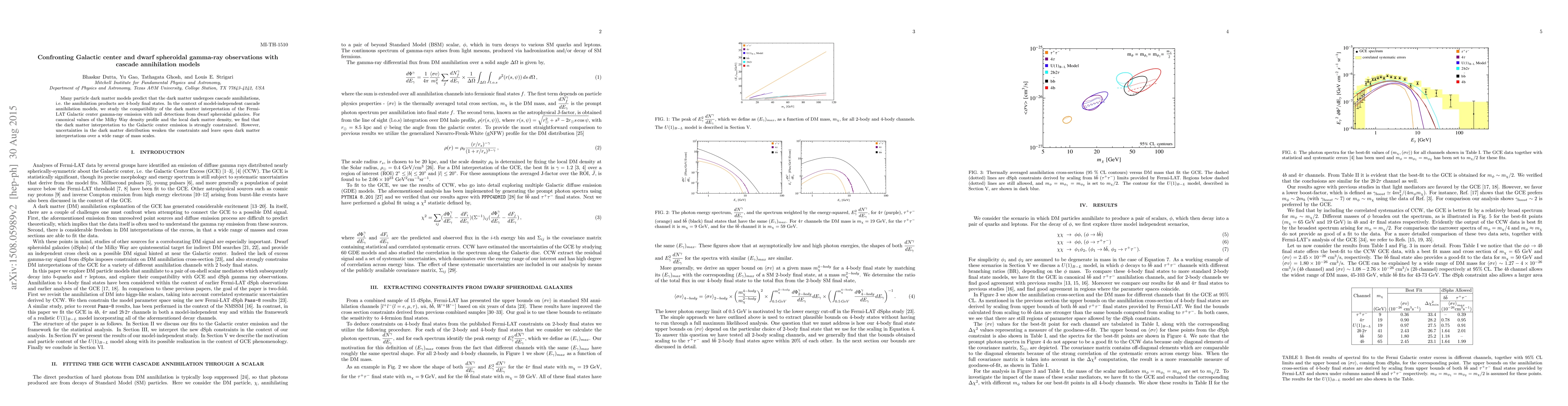 This paper examines the compatibility of dark matter models predicting cascade annihilations with gamma-ray observations from the Galactic center and dwarf spheroidal galaxies. It finds strong constraints on dark matter interpretations for the Galactic center emission, but uncertainties in the dark matter distribution allow for a wide range of mass scales to remain viable.