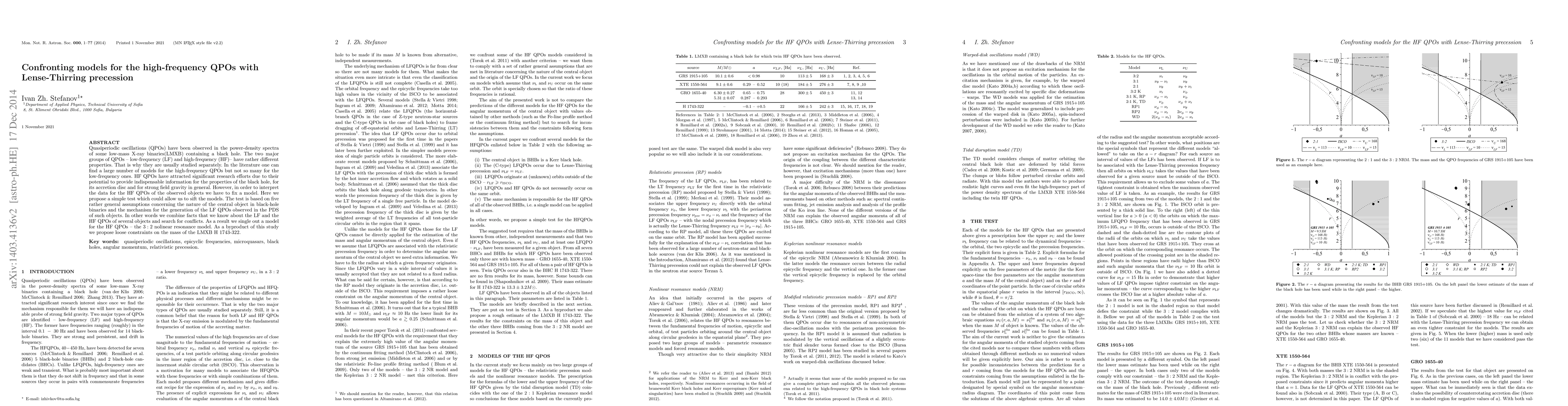 Quasiperiodic oscillations (QPOs) have been observed in the power-density spectra of some low-mass X-ray binaries(LMXB) containing a black hole. The two major groups of QPOs -- low-frequency and high-frequency -- have rather different properties. That is why they are usually studied separately. In the literature one can find a large number of models for the high-frequency QPOs but not so many for the low-frequency ones. HF QPOs have attracted significant research efforts due to their potential to provide indispensable information for the properties of the black hole, for its accretion disc and for strong field gravity in general. However, in order to interpret the data for the HF QPOs of the observed objects we have to fix a model. Here we propose a simple test which could allow us to sift the models. The test is based on five rather general assumptions concerning the nature of the central object in black-hole binaries and the mechanism for the generation of the LF QPOs observed in the PDS of such objects. In other words we combine facts that we know about the LF and the HF QPOs of several objects and search for conflicts. As a result we single out a model for the HF QPOs -- the 3:2 nolinear resonance model. As a byproduct of this study we propose loose constraints on the mass of the LMXB H 1743-322.