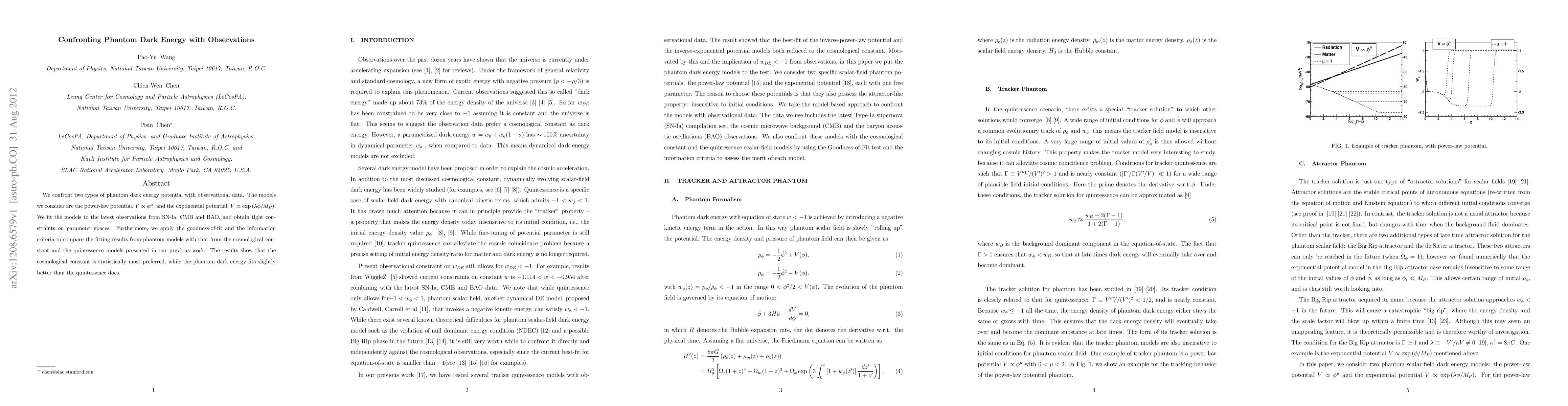 We confront two types of phantom dark energy potential with observational data. The models we consider are the power-law potential, $V\propto {\phi}^{\mu}$, and the exponential potential, $V\propto \exp({\lambda}{\phi}/{M_P})$. We fit the models to the latest observations from SN-Ia, CMB and BAO, and obtain tight constraints on parameter spaces. Furthermore, we apply the goodness-of-fit and the information criteria to compare the fitting results from phantom models with that from the cosmological constant and the quintessence models presented in our previous work. The results show that the cosmological constant is statistically most preferred, while the phantom dark energy fits slightly better than the quintessence does.