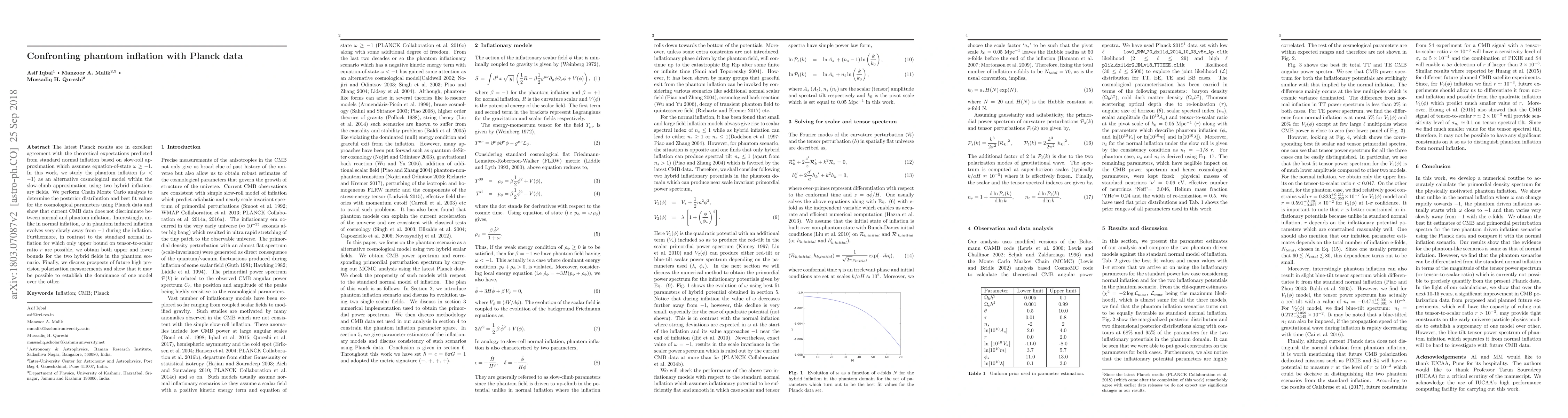 The latest Planck results are in excellent agreement with the theoretical expectations predicted from standard normal inflation based on slow-roll approximation which assumes equation-of-state $\omega \geq-1$. In this work, we study the phantom inflation ($\omega<-1$) as an alternative cosmological model within the slow-climb approximation using two hybrid inflationary fields. We perform Chain Monte Carlo analysis to determine the posterior distribution and best fit values for the cosmological parameters using Planck data and show that current CMB data does not discriminate between normal and phantom inflation. Interestingly, unlike in normal inflation, $\omega$ in phantom induced inflation evolves very slowly away from $-1$ during the inflation. Furthermore, in contrast to the standard normal inflation for which only upper bound on tensor-to-scalar ratio $r$ are possible, we obtain both upper and lower bounds for the two hybrid fields in the phantom scenario. Finally, we discuss prospects of future high precision polarization measurements and show that it may be possible to establish the dominance of one model over the other.