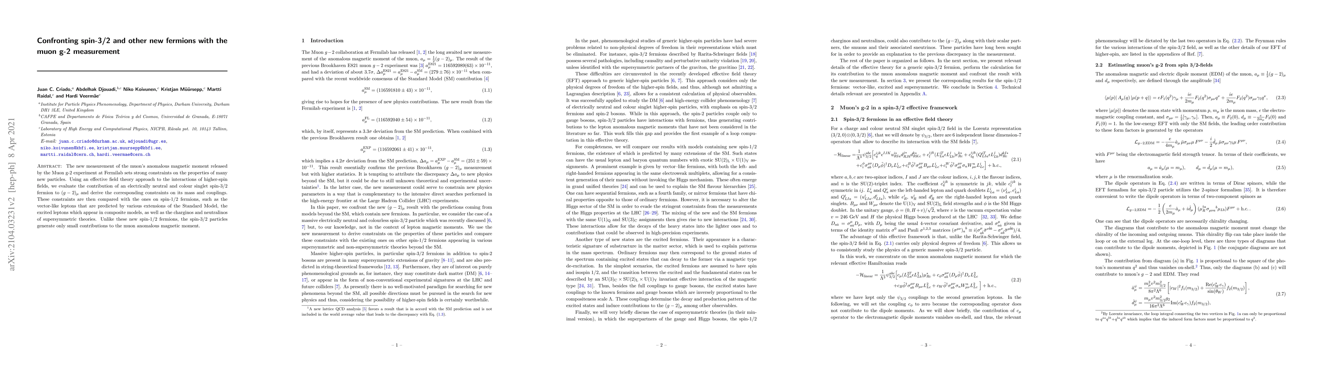 The new measurement of the muon's anomalous magnetic moment released by the Muon g-2 experiment at Fermilab sets strong constraints on the properties of many new particles. Using an effective field theory approach to the interactions of higher-spin fields, we evaluate the contribution of an electrically neutral and colour singlet spin-3/2 fermion to $(g-2)_\mu$ and derive the corresponding constraints on its mass and couplings. These constraints are then compared with the ones on spin-1/2 fermions, such as the vector-like leptons that are predicted by various extensions of the Standard Model, the excited leptons which appear in composite models, as well as the charginos and neutralinos of supersymmetric theories. Unlike these new spin-1/2 fermions, the spin-3/2 particles generate only small contributions to the muon anomalous magnetic moment.