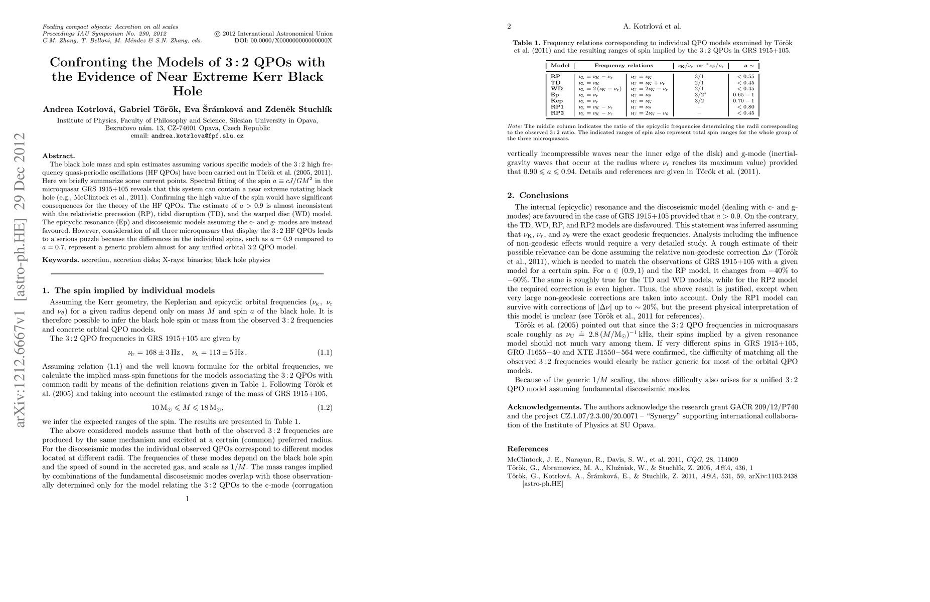 The black hole mass and spin estimates assuming various specific models of the 3:2 high frequency quasi-periodic oscillations (HF QPOs) have been carried out in Torok et al. (2005, 2011). Here we briefly summarize some current points. Spectral fitting of the spin a=cJ/GM^2 in the microquasar GRS 1915+105 reveals that this system can contain a near extreme rotating black hole (e.g., McClintock et al. 2011). Confirming the high value of the spin would have significant consequences for the theory of the HF QPOs. The estimate of a>0.9 is almost inconsistent with the relativistic precession (RP), tidal disruption (TD), and the warped disc (WD) model. The epicyclic resonance (Ep) and discoseismic models assuming the c- and g- modes are instead favoured. However, consideration of all three microquasars that display the 3:2 HF QPOs leads to a serious puzzle because the differences in the individual spins, such as a=0.9 compared to a=0.7, represent a generic problem almost for any unified orbital 3:2 QPO model.