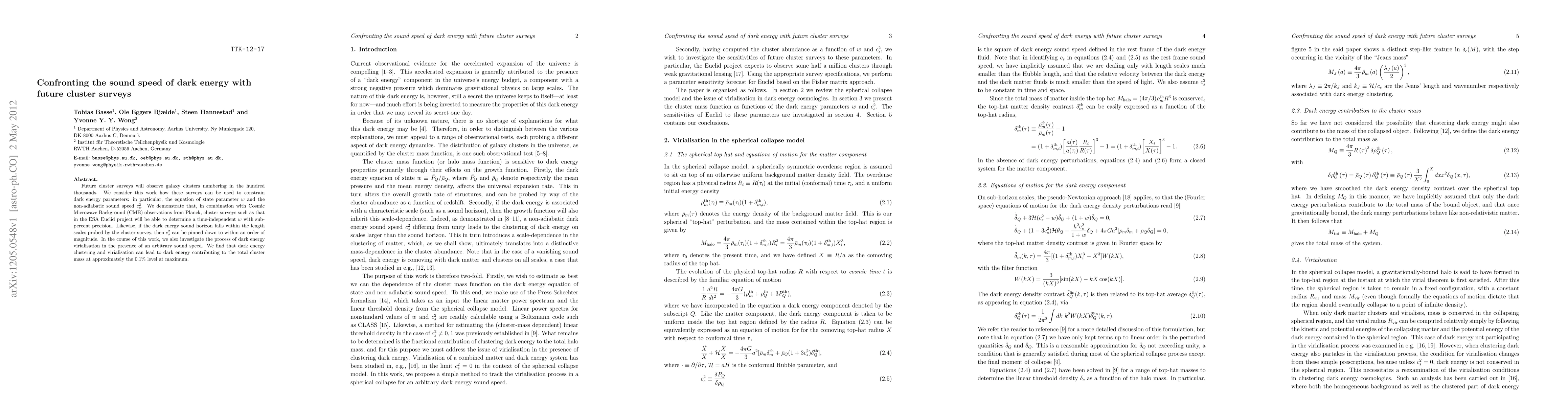Future cluster surveys will provide precise constraints on dark energy parameters, including the equation of state parameter w and non-adiabatic sound speed c_s^2, when combined with CMB observations. These surveys can determine a time-independent w with subpercent precision and c_s^2 within an order of magnitude if the dark energy sound horizon is within the survey's length scales.