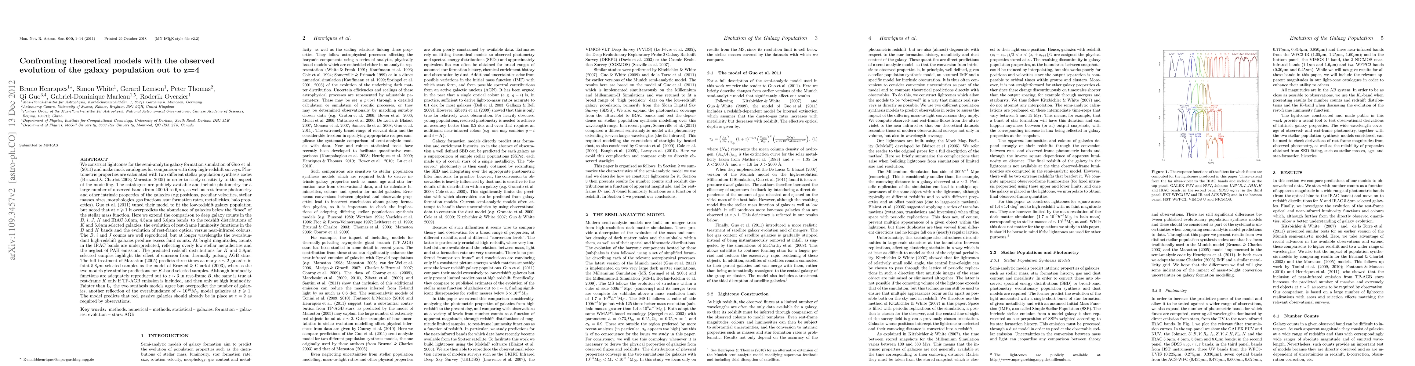 [abridged] We construct lightcones for the semi-analytic galaxy formation simulation of Guo et al. (2011) and make mock catalogues for comparison with deep high-redshift surveys. Photometric properties are calculated with two different stellar population synthesis codes (Bruzual & Charlot 2003; Maraston 2005) in order to study sensitivity to this aspect of the modelling. The catalogues are publicly available and include photometry for a large number of observed bands from 4000{\deg}A to 6{\mu}m, as well as rest-frame photometry and intrinsic properties of the galaxies. Guo et al. (2011) tuned their model to fit the low-redshift galaxy population but noted that at z > 1 it overpredicts the abundance of galaxies below the "knee" of the stellar mass function. Here we extend the comparison to deep galaxy counts in the B, i, J, K and IRAC 3.6{\mu}m, 4.5{\mu}m and 5.8{\mu}m bands, to the redshift distributions of K and 5.8{\mu}m selected galaxies, and to the evolution of rest-frame luminosity functions in the B and K bands. The B, i and J counts are well reproduced, but at longer wavelengths the overabundant high-redshift galaxies produce excess faint counts. The predicted redshift distributions for K and 5.8{\mu}m selected samples highlight the effect of emission from thermally pulsing AGB stars. The full treatment of Maraston (2005) predicts three times as many z~2 galaxies in faint 5.8{\mu}m selected samples as the model of Bruzual & Charlot (2003), whereas the two models give similar predictions for K-band selected samples. Although luminosity functions are adequately reproduced out to z~3 in rest-frame B, the same is true at rest-frame K only if TP-AGB emission is included, and then only at high luminosity. Fainter than L* the two synthesis models agree but overpredict the number of galaxies, another reflection of the overabundance of ~10^10M\odot model galaxies at z > 1.