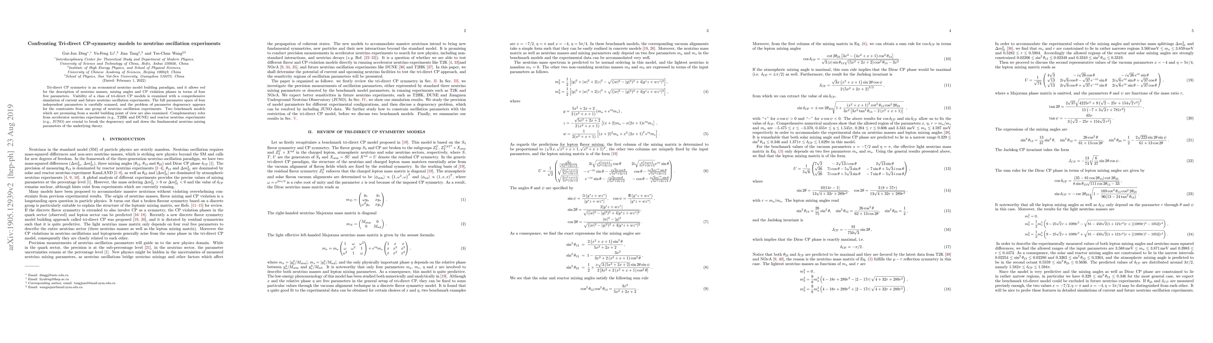 Tri-direct CP symmetry is an economical neutrino model building paradigm, and it allows to describe neutrino masses, mixing angles and CP violation phases in terms of four free parameters. Viability of a class of tri-direct CP models is examined with a comprehensive simulation of current and future neutrino oscillation experiments. Two benchmark models as well as the full parameter space are carefully scanned, and the parameter degeneracy problem is observed from the constraint of one group of neutrino oscillation experiments. Complementary roles from the accelerator neutrino experiments (e.g., T2HK and DUNE) and reactor neutrino experiments (e.g., JUNO) are crucial to break the degeneracy and nail down fundamental neutrino mixing parameters of the underlying theory.